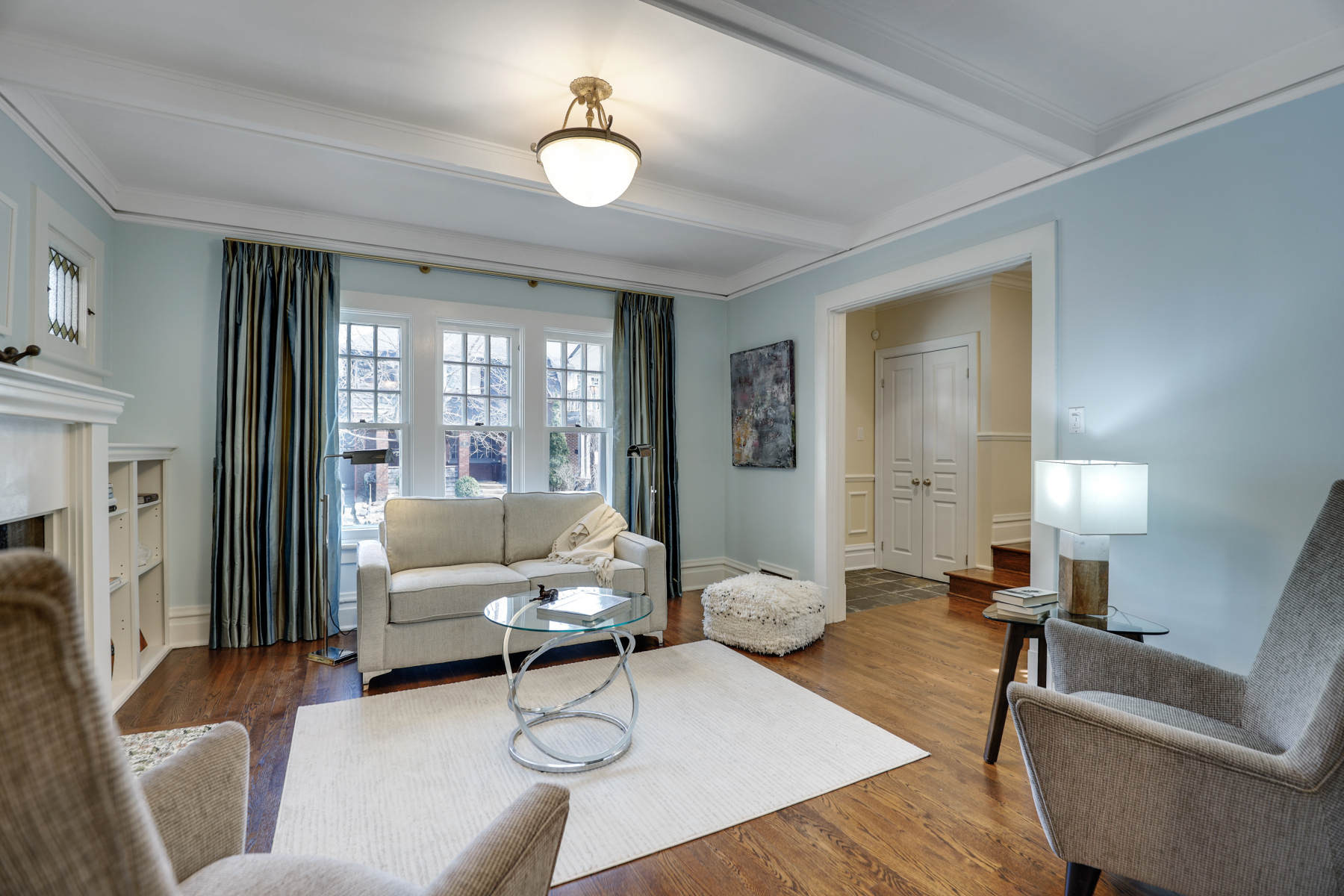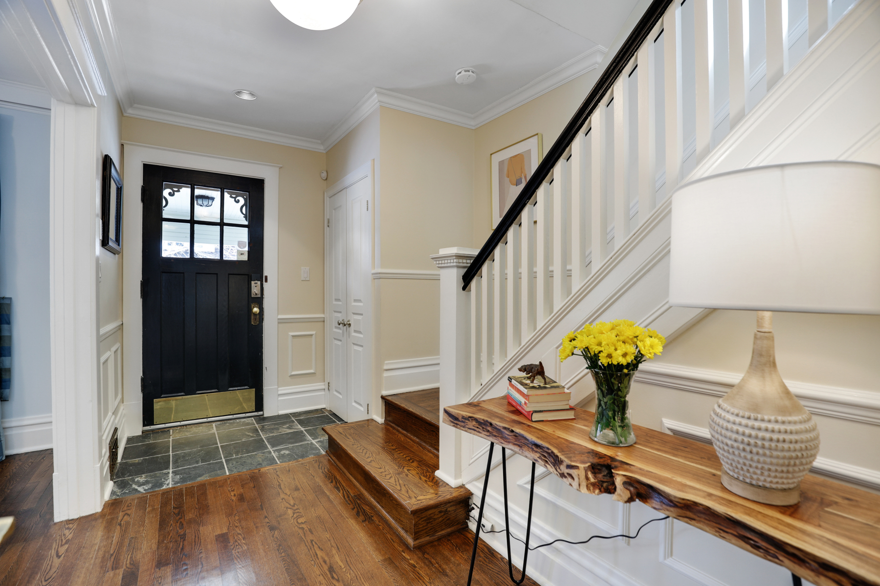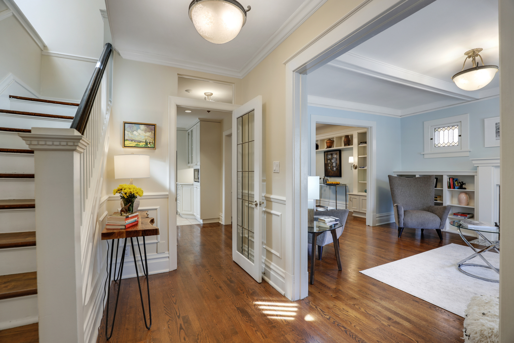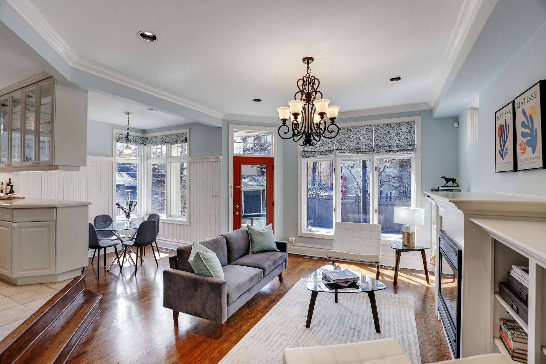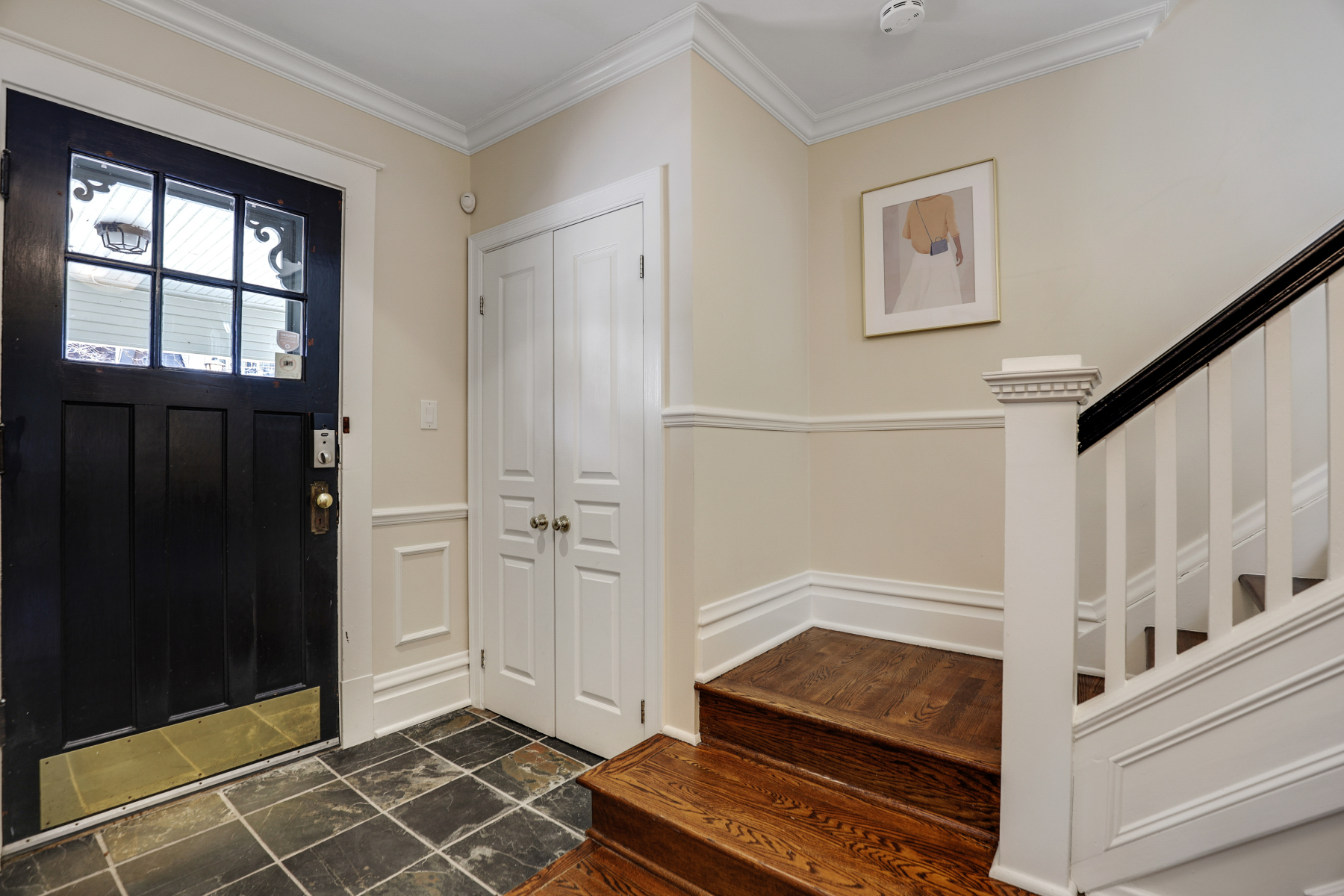 Nestled within the tranquility of a serene, tree-lined street highly sought after by discerning buyers, this remarkable home offers a coveted location adjacent to a peaceful Canal Inlet and Park. The timeless charm of its traditional façade harmonizes seamlessly with the elegance of the neighborhood's handsome single-family residences. A stone pathway leads to the private front sitting porch, inviting you into a warm embrace as you step through the front door and into a short hallway that gracefully guides you into the open yet defined living spaces.