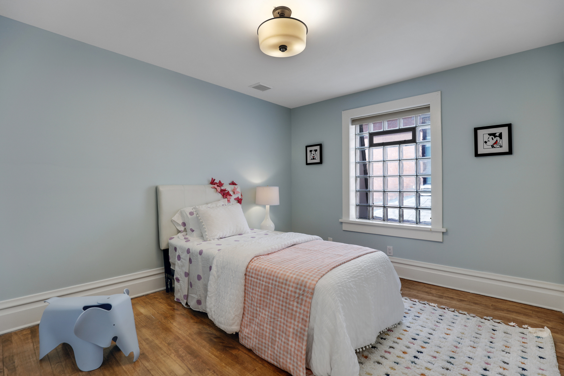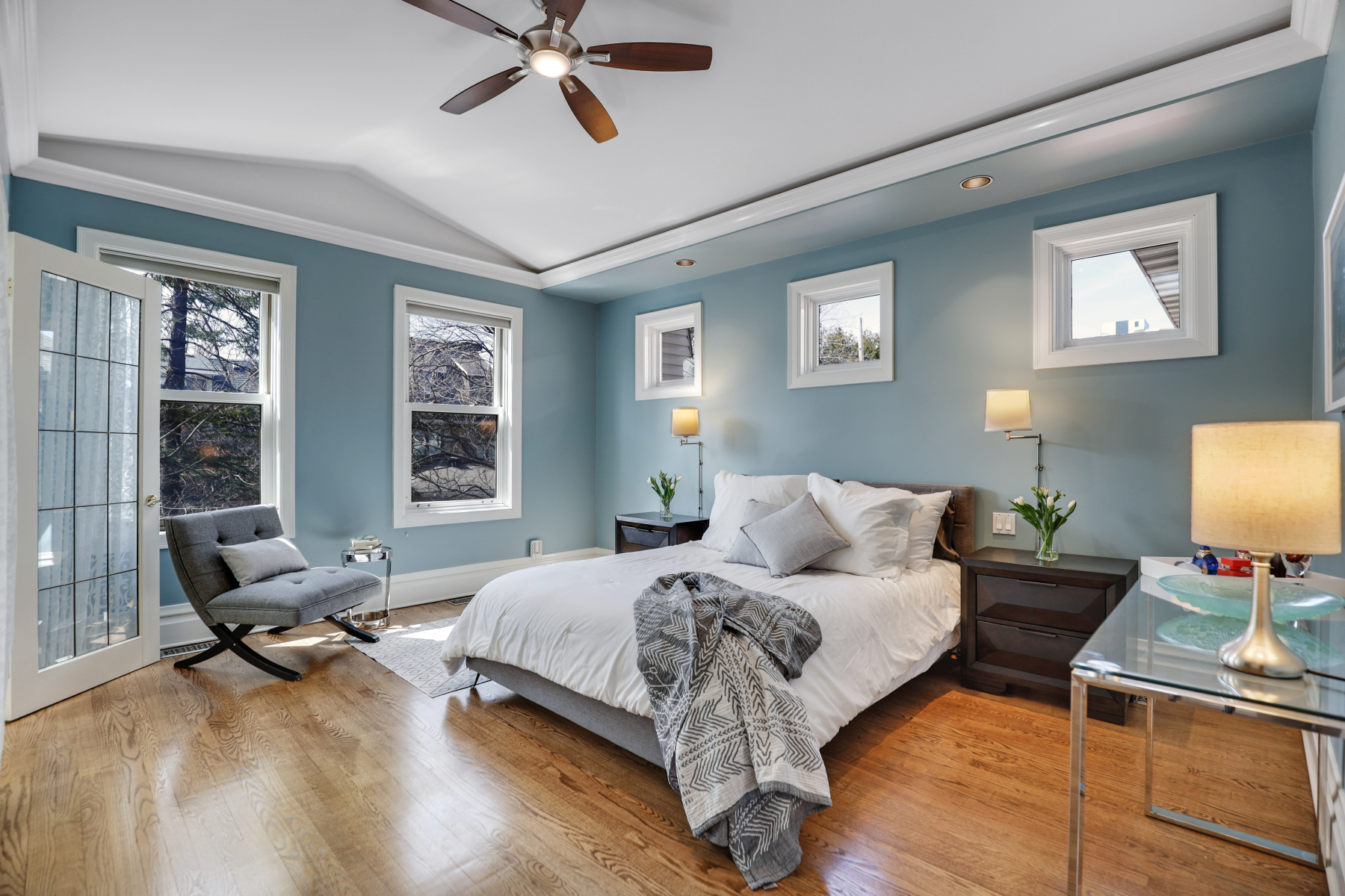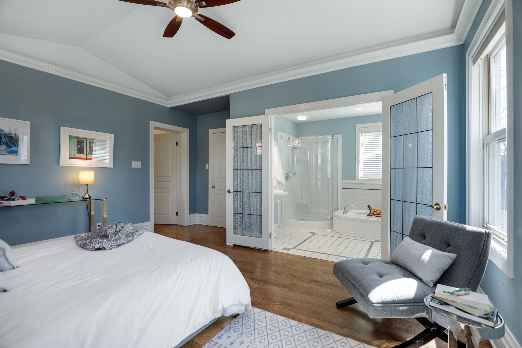 Ascending to the second floor reveals a spacious principal bedroom, bathed in sunlight from its southwest-facing windows and boasting French doors that open to an oversized en-suite bathroom, offering a private sanctuary for relaxation and rejuvenation. Three additional bedrooms, each generously sized with ample closet space and hardwood floors, provide comfortable accommodations for family/guests nor for home offices. A full bathroom with laundry facilities ensures convenience and functionality.