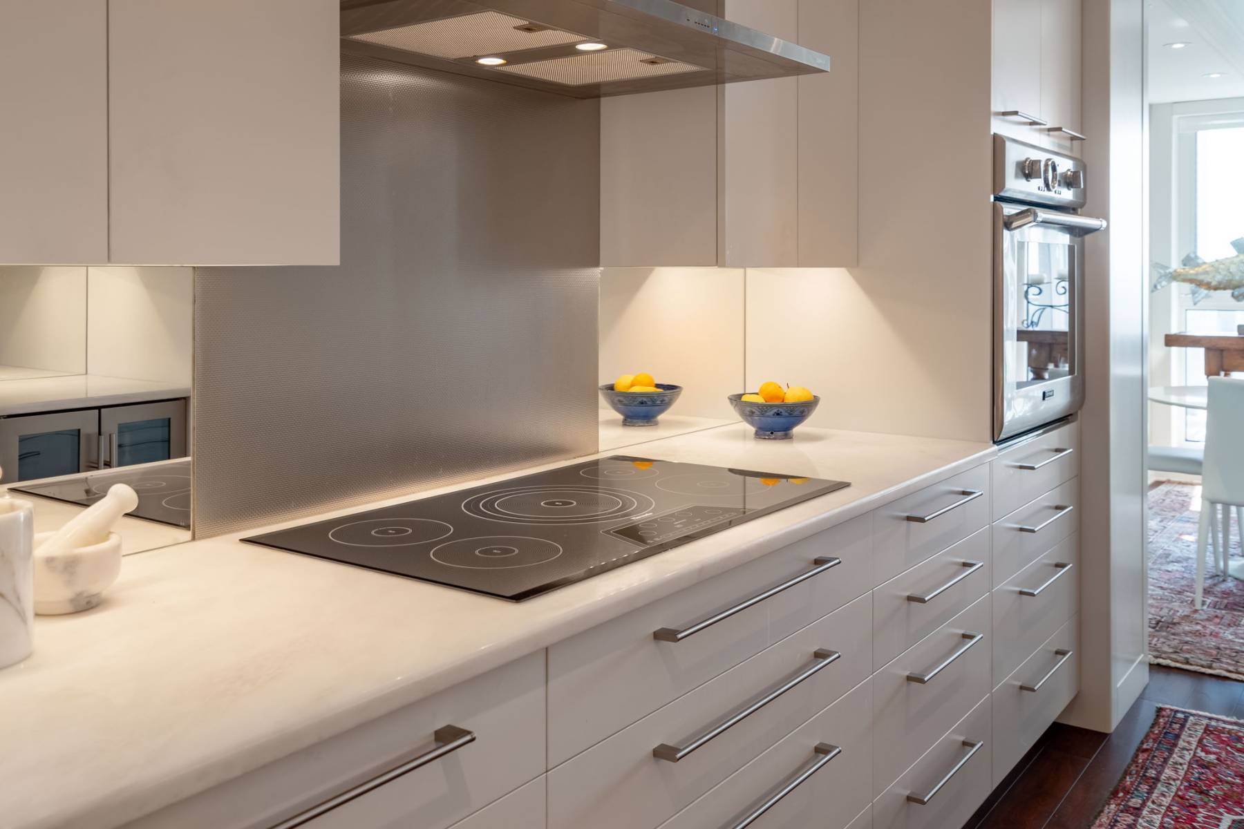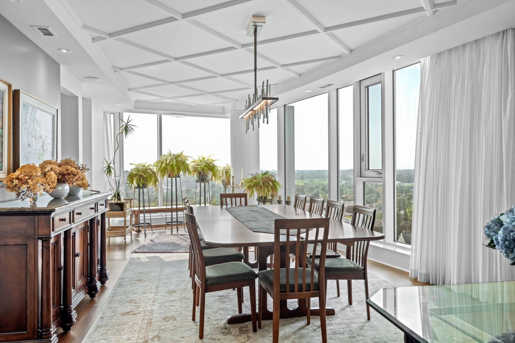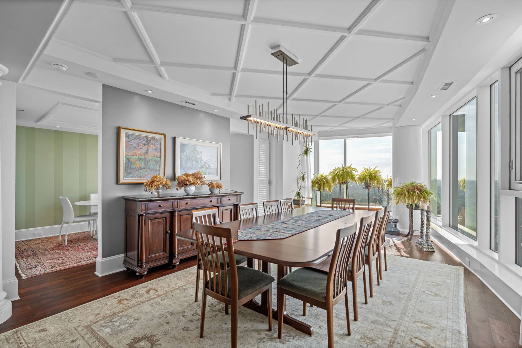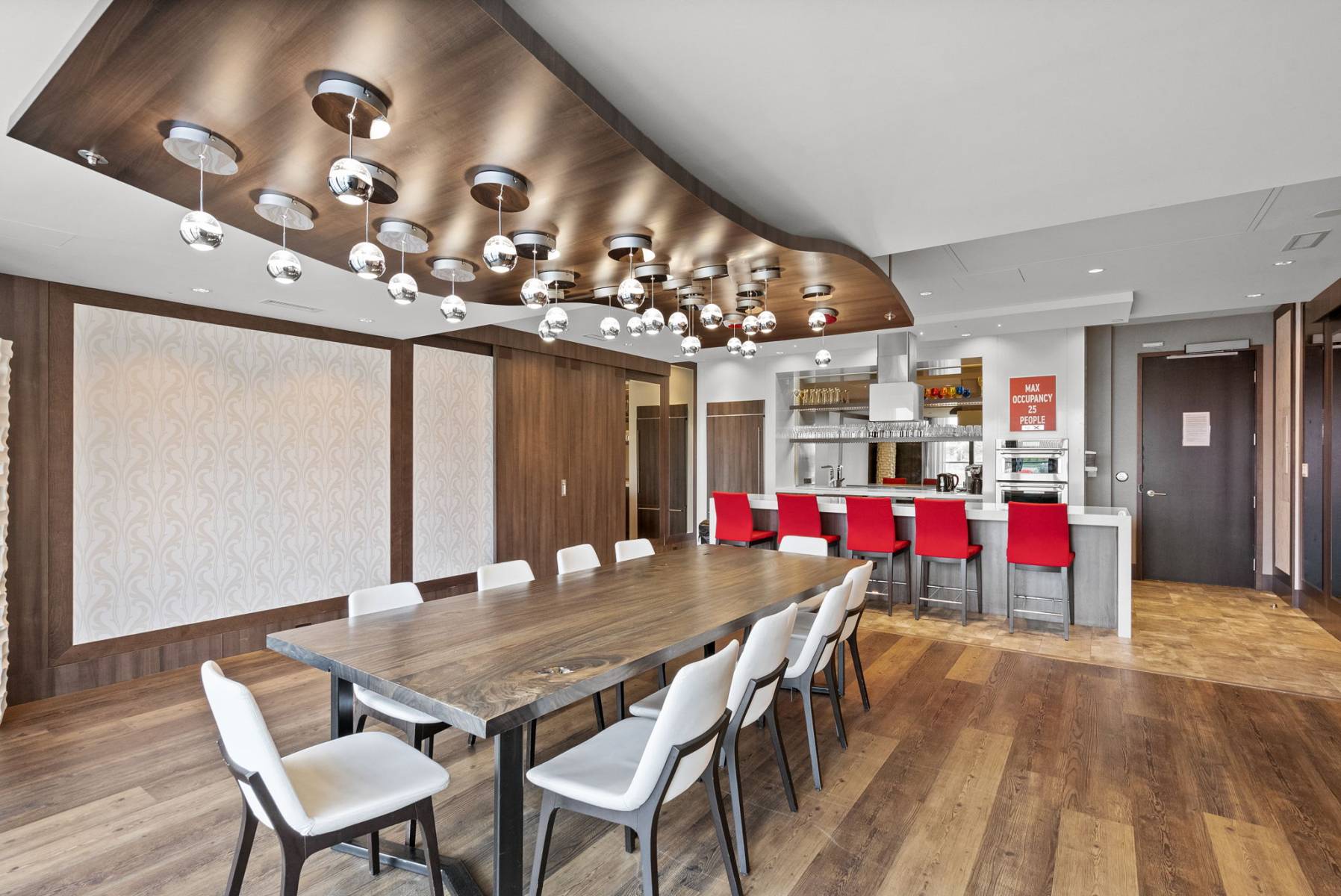 Multi-Purpose Entertaining Room: designed with entertainment in mind, with a catering styled kitchen and bar, stylish lounge seating, and tables for casual dining. Floor-to-ceiling windows face south and west, with windows that fold and slide open, to bring the outside in from the adjoining terrace.