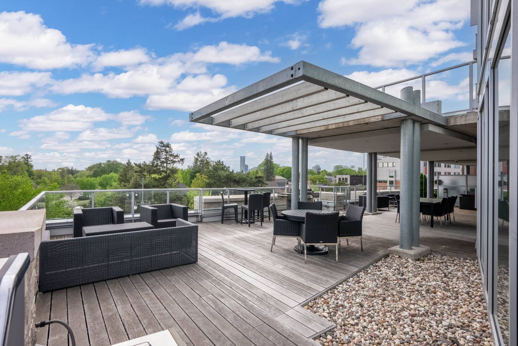 Podium Terrace: gas BBQs, lounge furniture, dining tables, a fireplace, decking, and landscaping. you can entertain or just relax while enjoying the views towards the Rideau Canal.