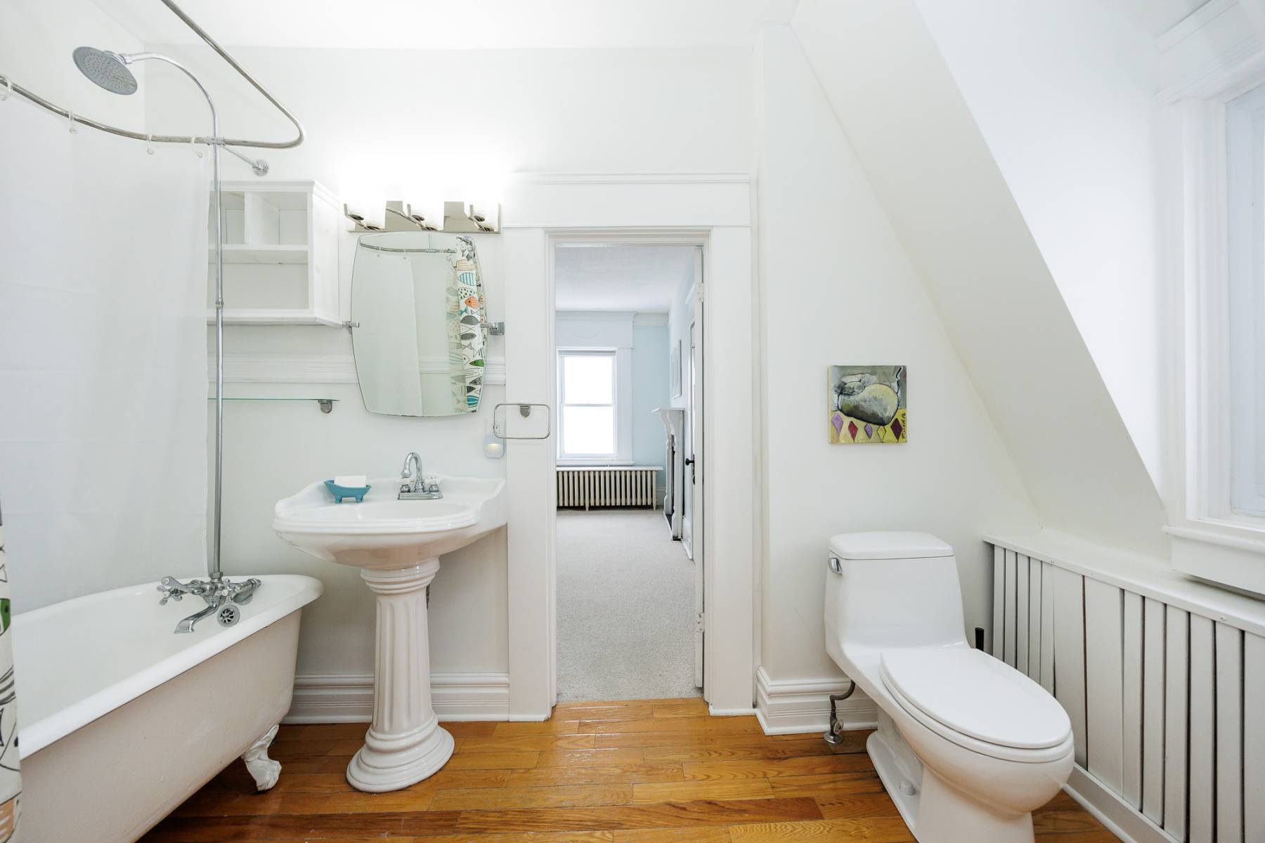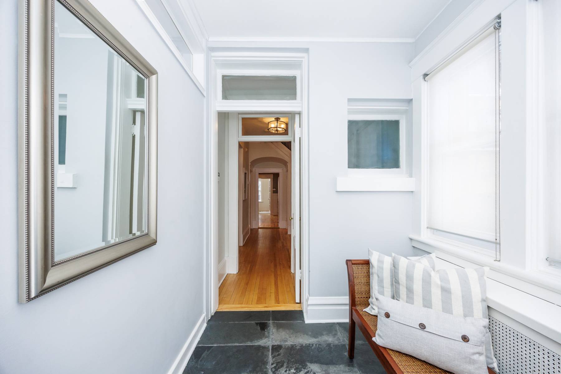 Upstairs, you'll find generously sized bedrooms and a fully renovated main bath. The west-facing front sunroom on this level is a bright, joyful space—perfect for a second office, reading room, or lounge. The third floor offers a secluded retreat with two more large bedrooms and a full bathroom—ideal for a kids’ zone, private guest suite, or a serene primary haven.