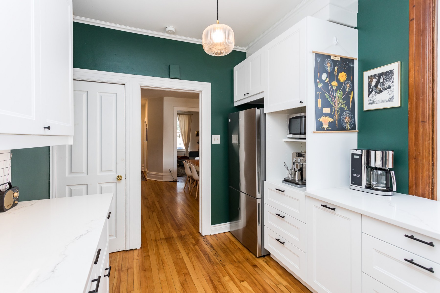 With a spacious layout highlighted by high ceilings and hardwood floors, this home welcomes you with open arms. The sparkling modern kitchen, updated in 2022, boasts ample cupboard and counter space, as well as updated appliances, making meal prep a breeze.