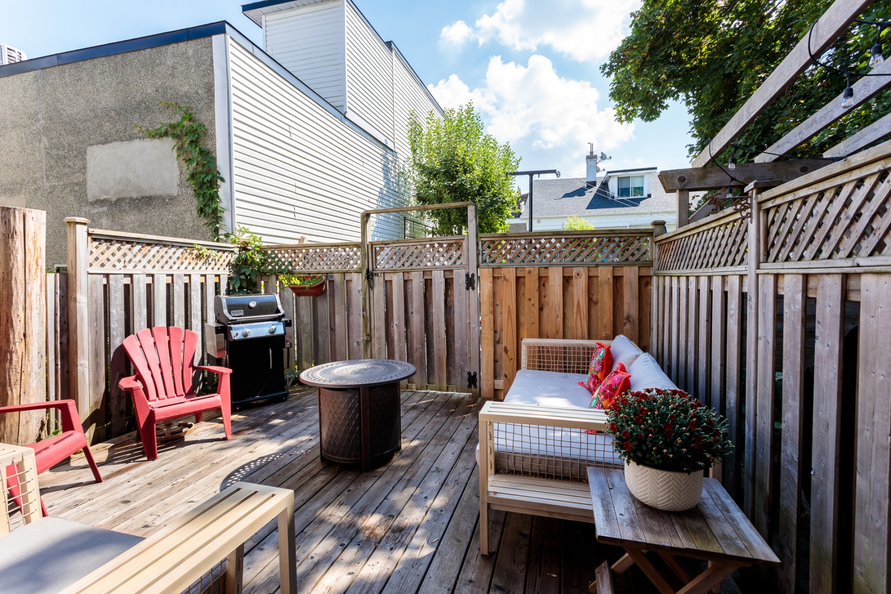 Whether you're seeking a peaceful reading nook or the ideal at-home office, the recently revamped rear den is your sanctuary. It opens onto a large private rear deck, added in 2019, providing the perfect space for urban entertaining.