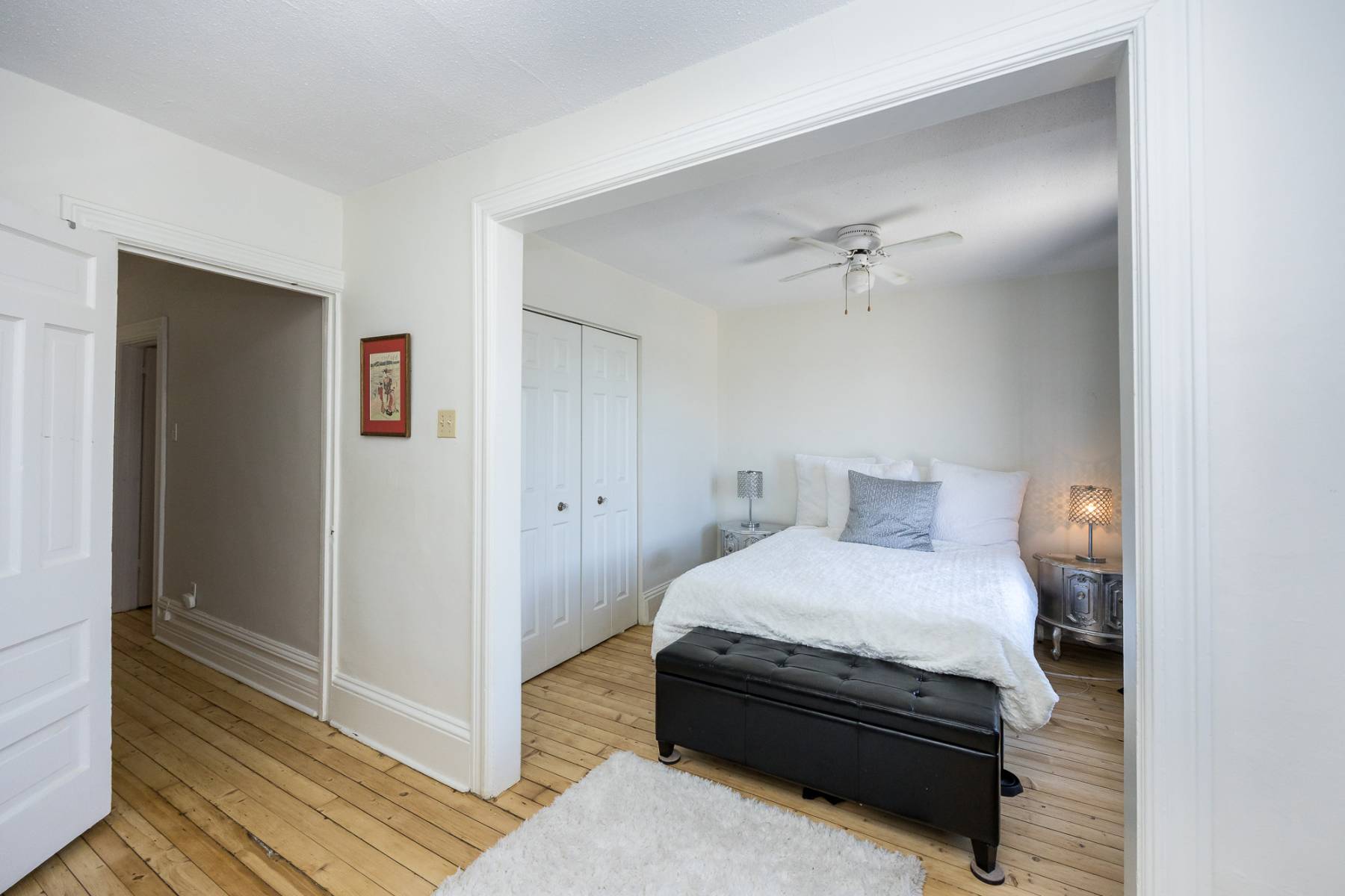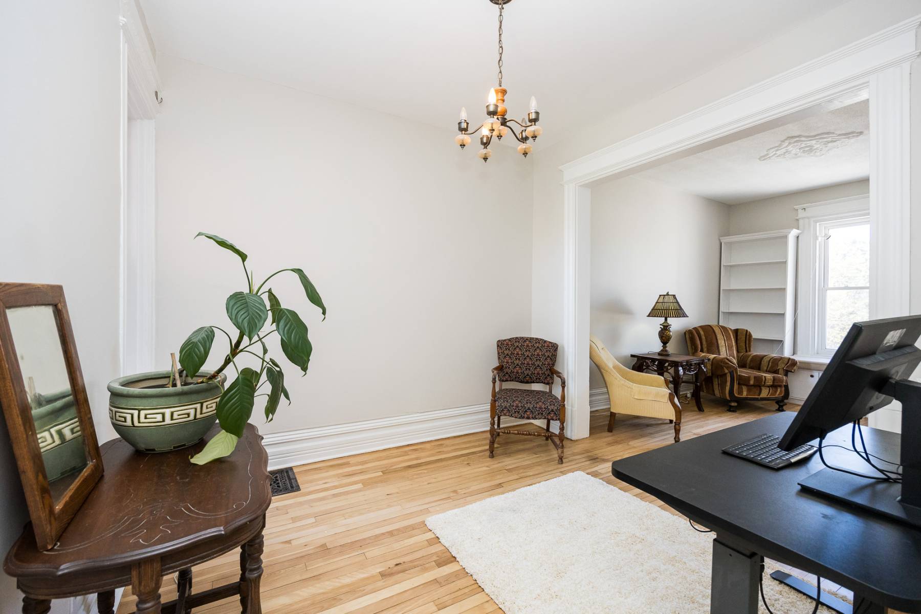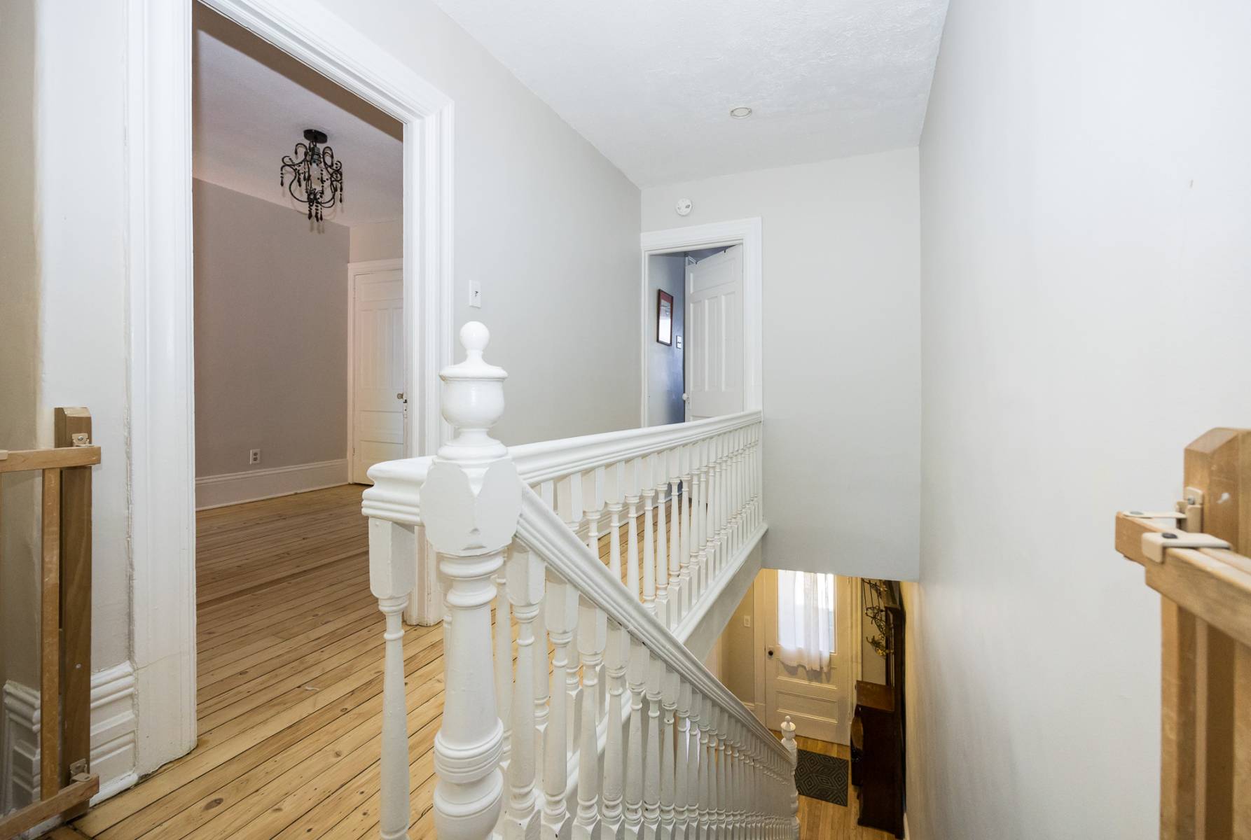 Upon entering through the front door, you're greeted by a foyer and hallway adorned with the original staircase, serving as a captivating focal point.