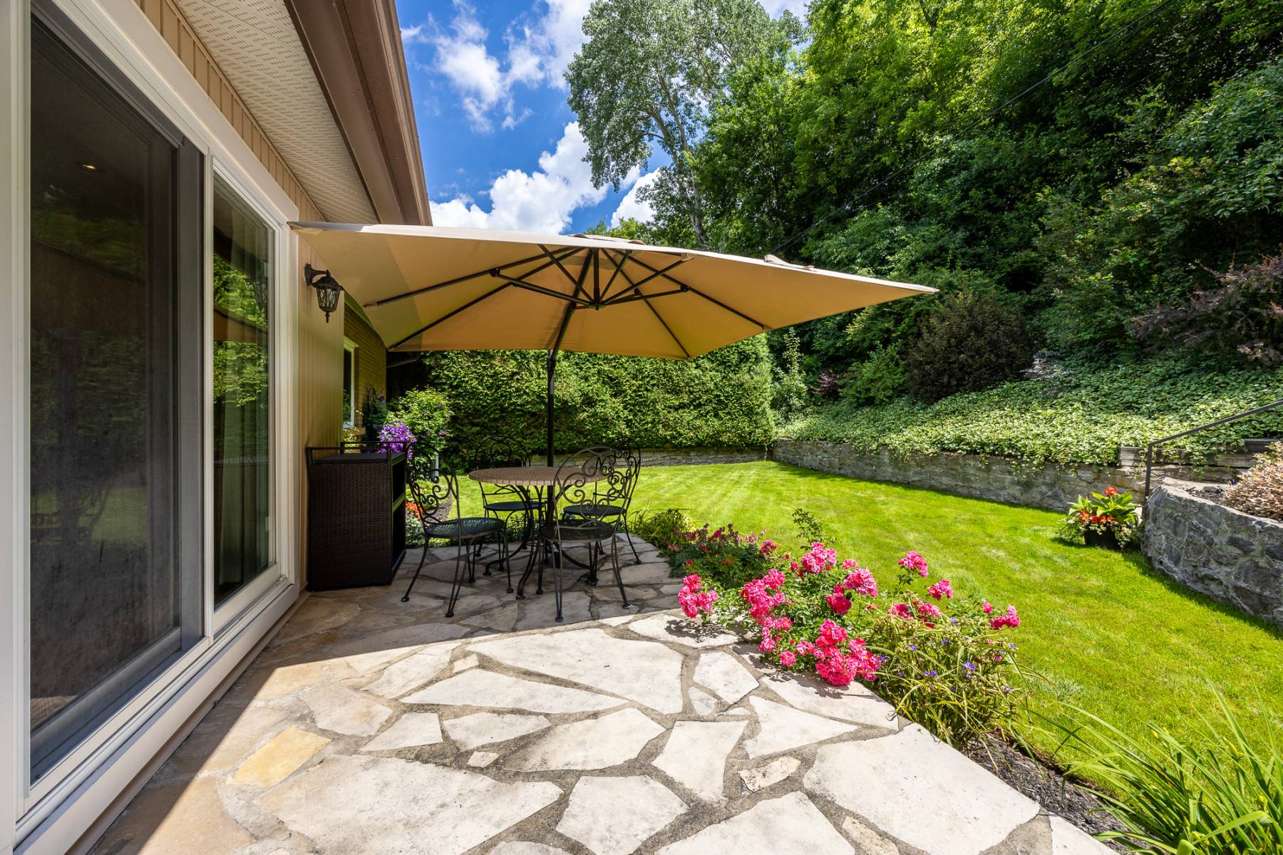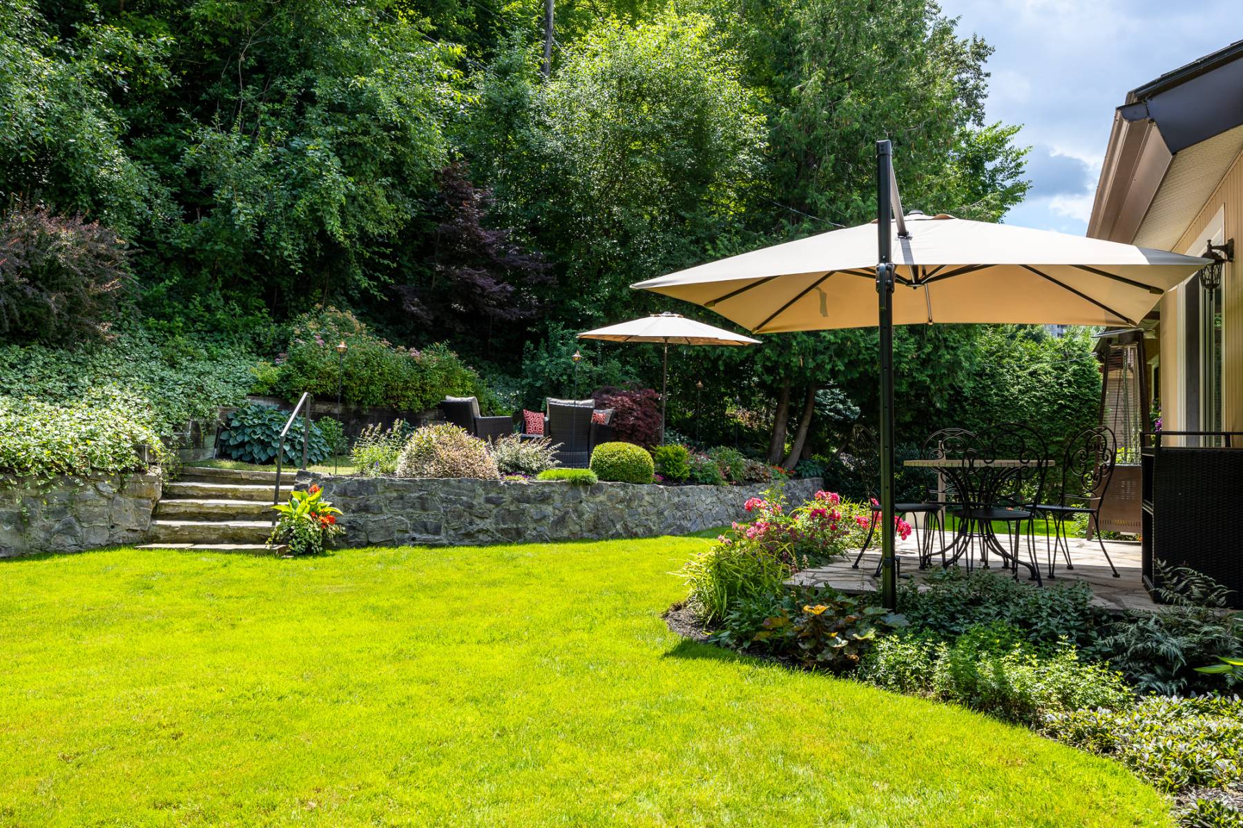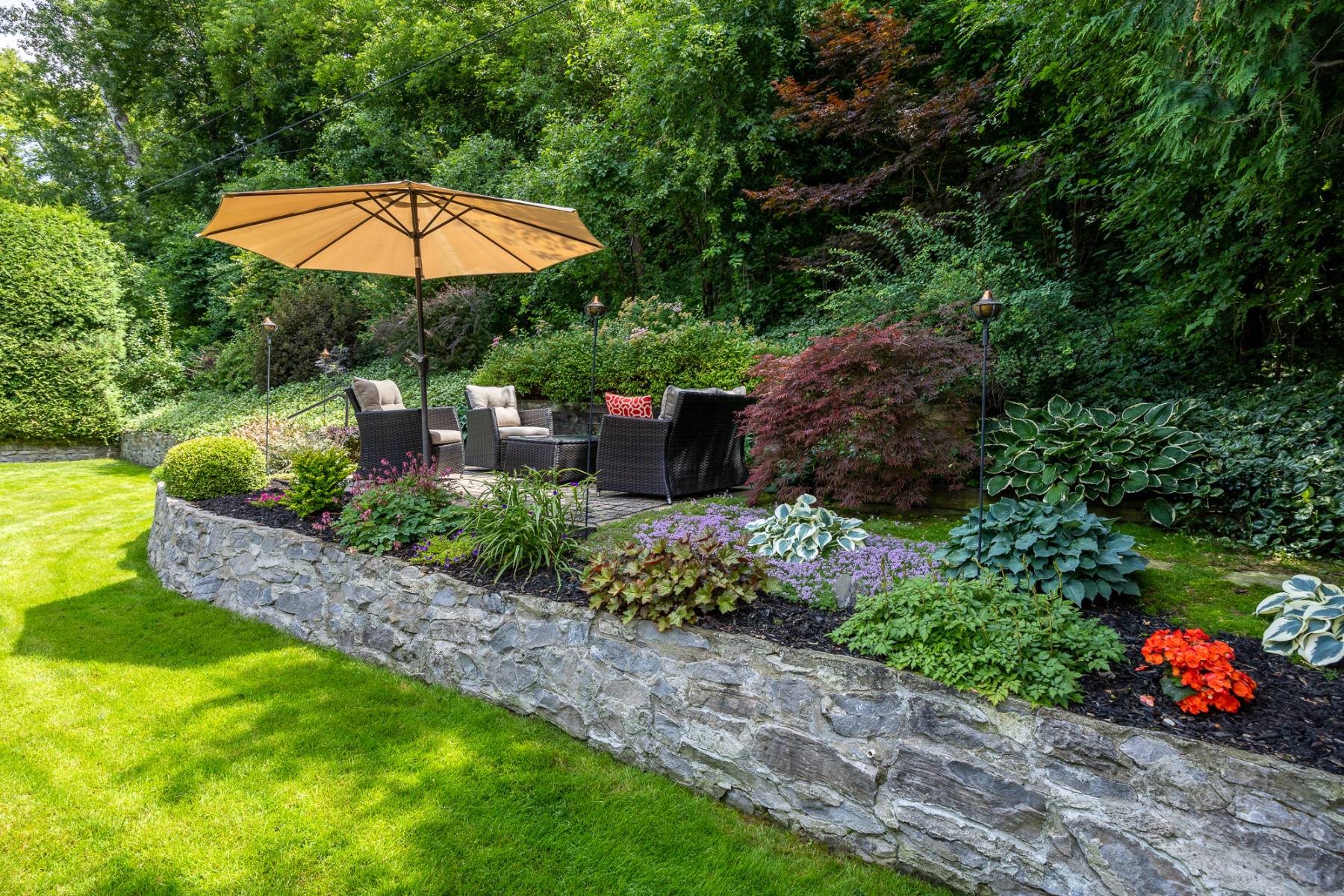 Surrounded by beautiful stone walls and rockeries this lot (79.90 ft. x 99.88ft) provides to the home not only superb vistas but lovely privacy.