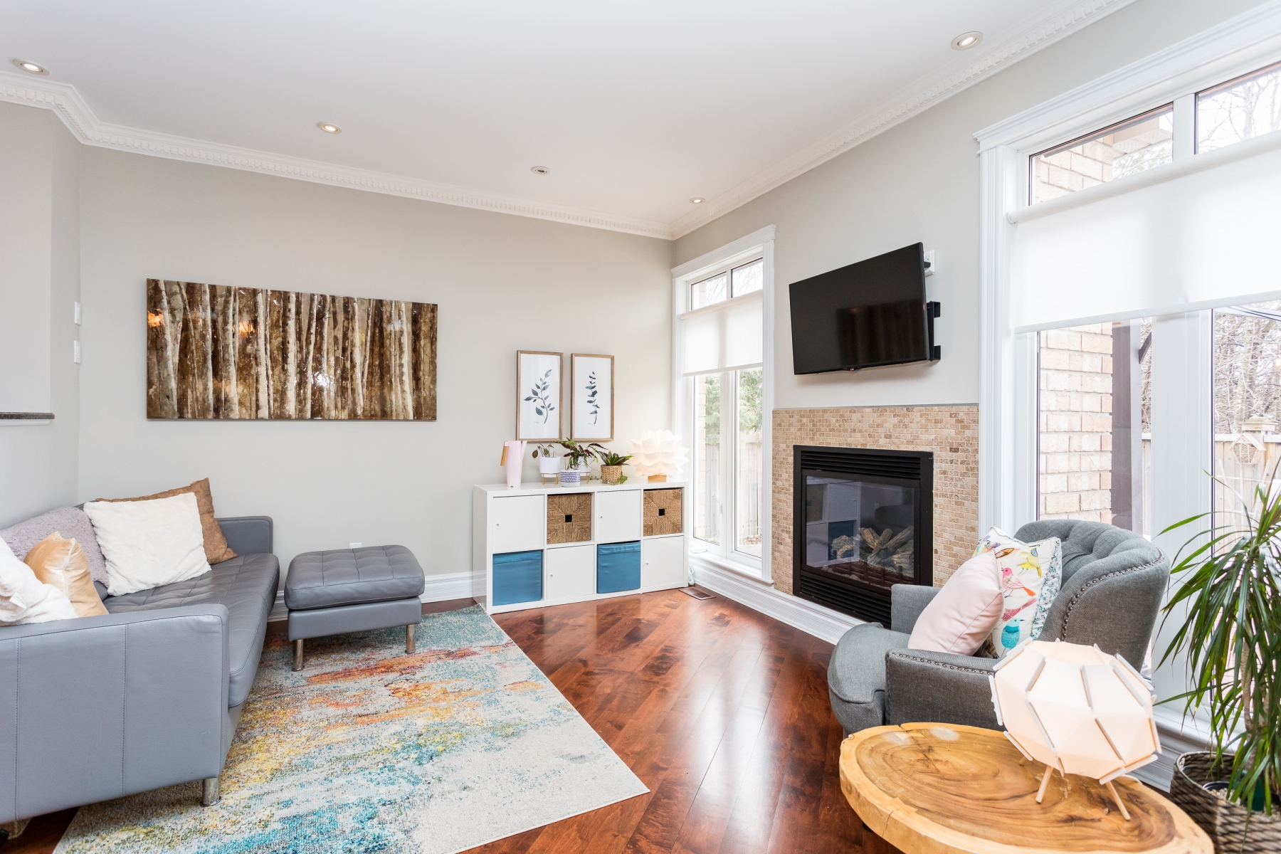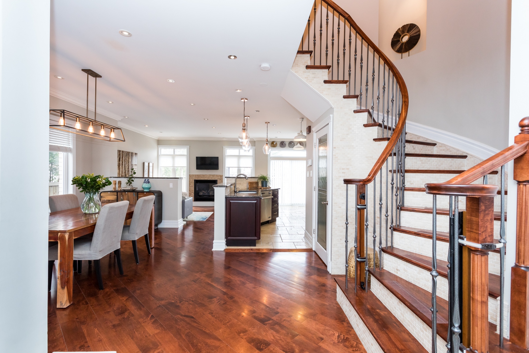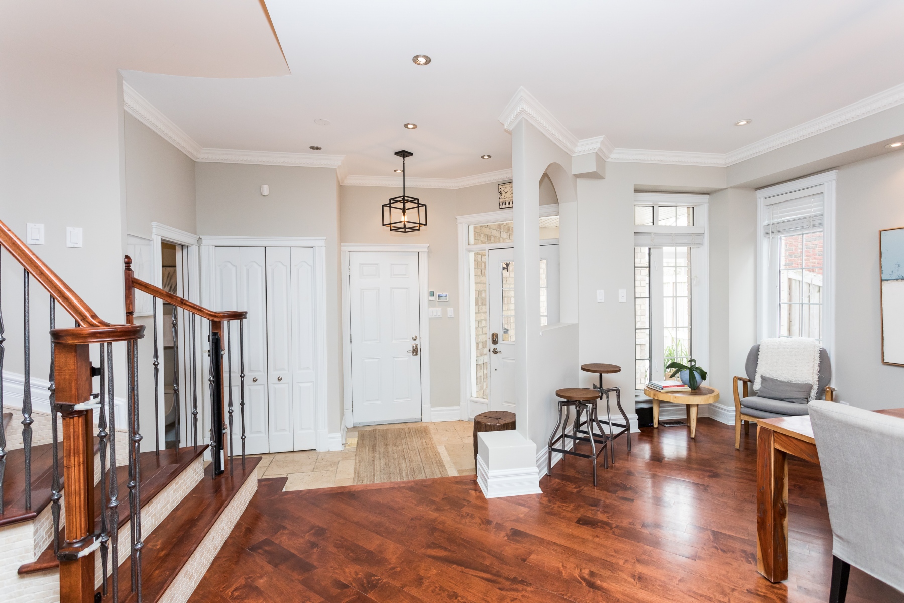 The main living spaces are sun filled and open yet there is a sense of definition to the rooms. However versatile for you to use as you want or need. The Livingroom runs along the back of the house and enjoys the garden/yard through a bank of windows. A patio door opens to the private rear yard and deck. When the rooms are not flooded with natural light, the abundance of recessed lighting brightens the rooms. Warmed by maple wood flooring, a gas fireplace and accented with crown moldings, this home is warm and inviting.