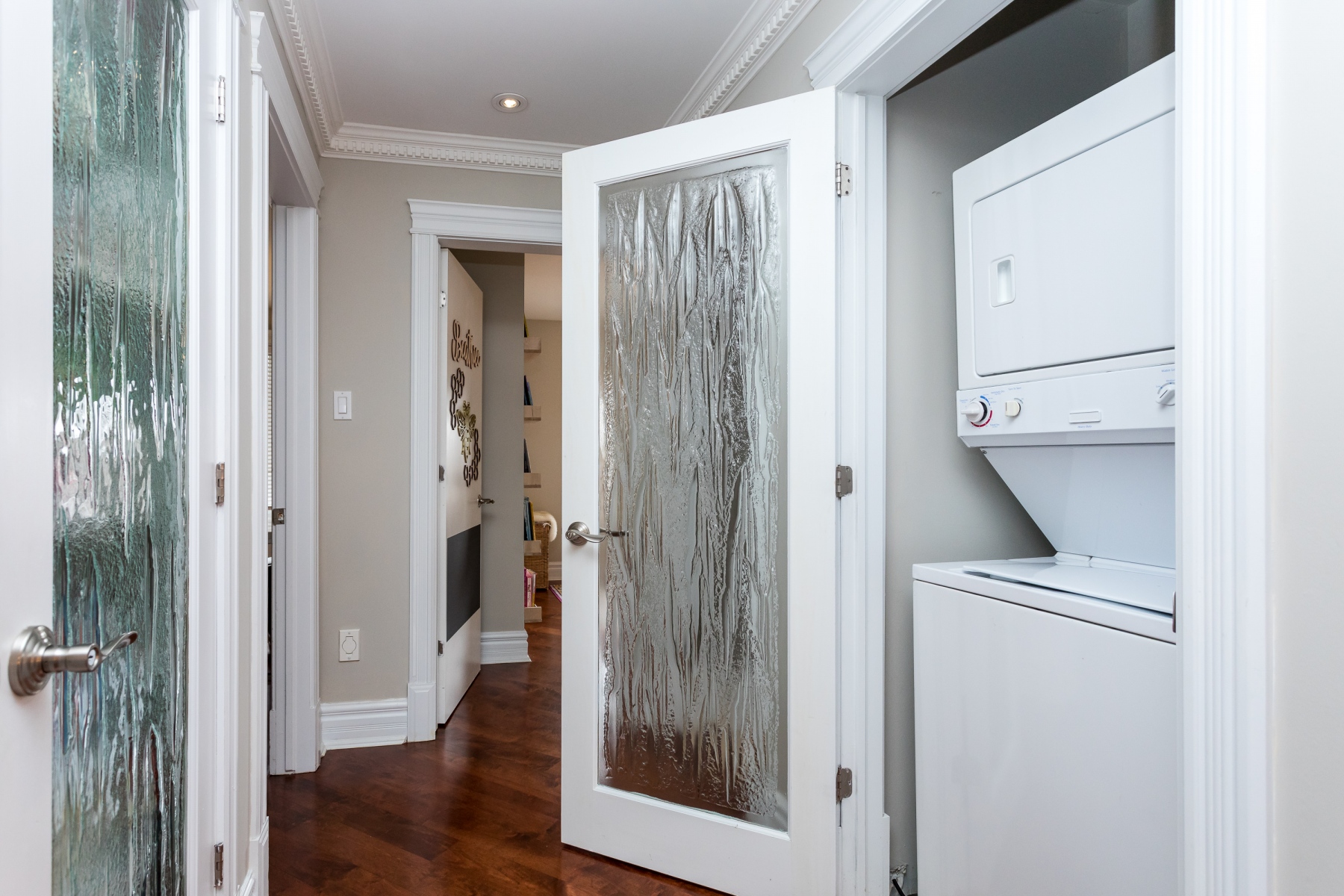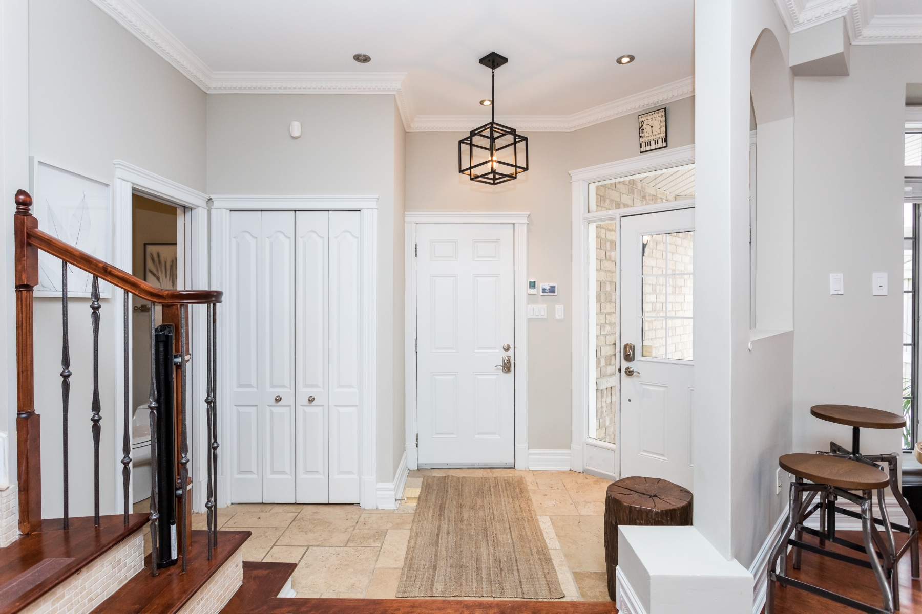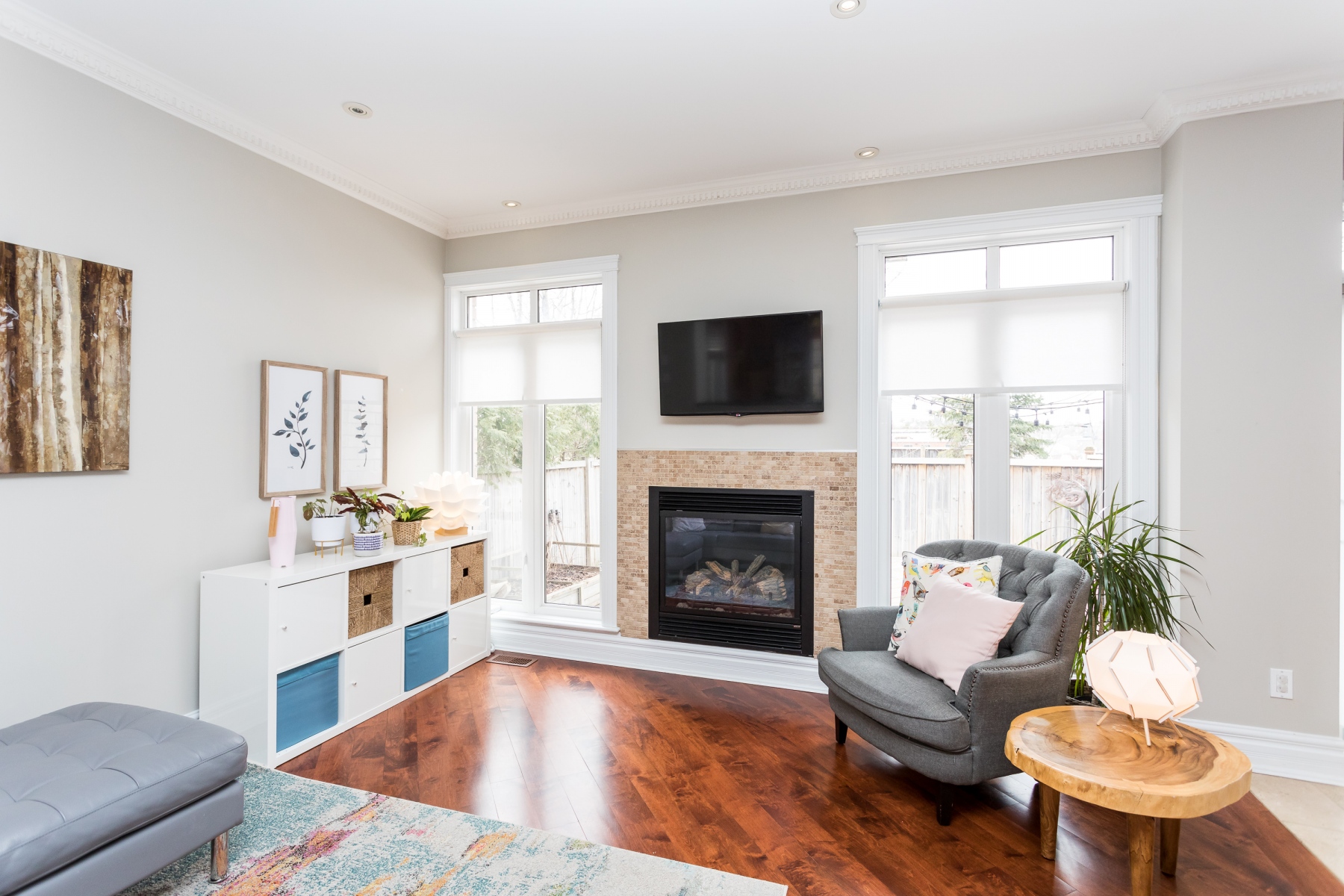 The main living spaces are sun filled and open yet there is a sense of definition to the rooms. However versatile for you to use as you want or need. The Livingroom runs along the back of the house and enjoys the garden/yard through a bank of windows. A patio door opens to the private rear yard and deck. When the rooms are not flooded with natural light, the abundance of recessed lighting brightens the rooms. Warmed by maple wood flooring, a gas fireplace and accented with crown moldings, this home is warm and inviting.