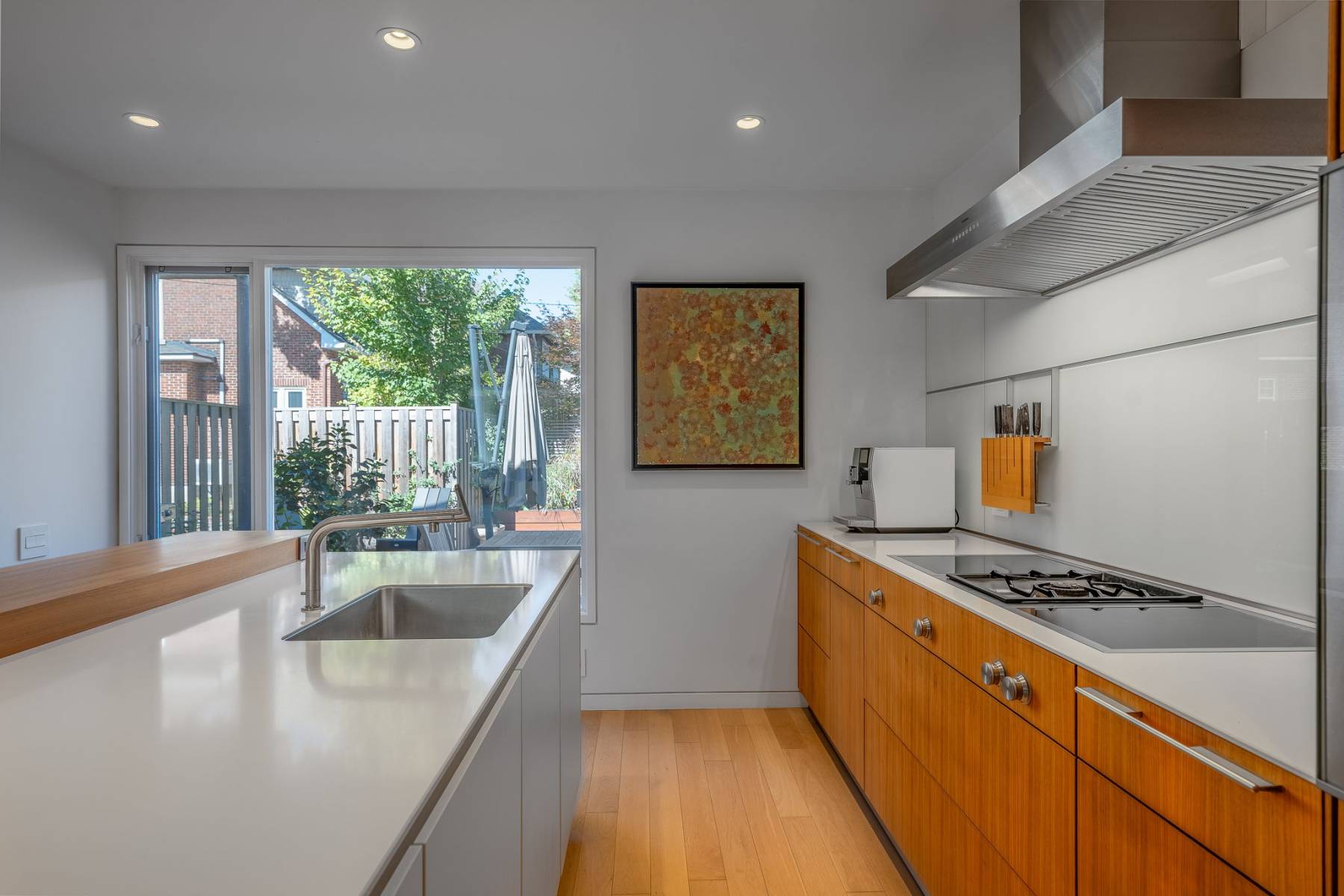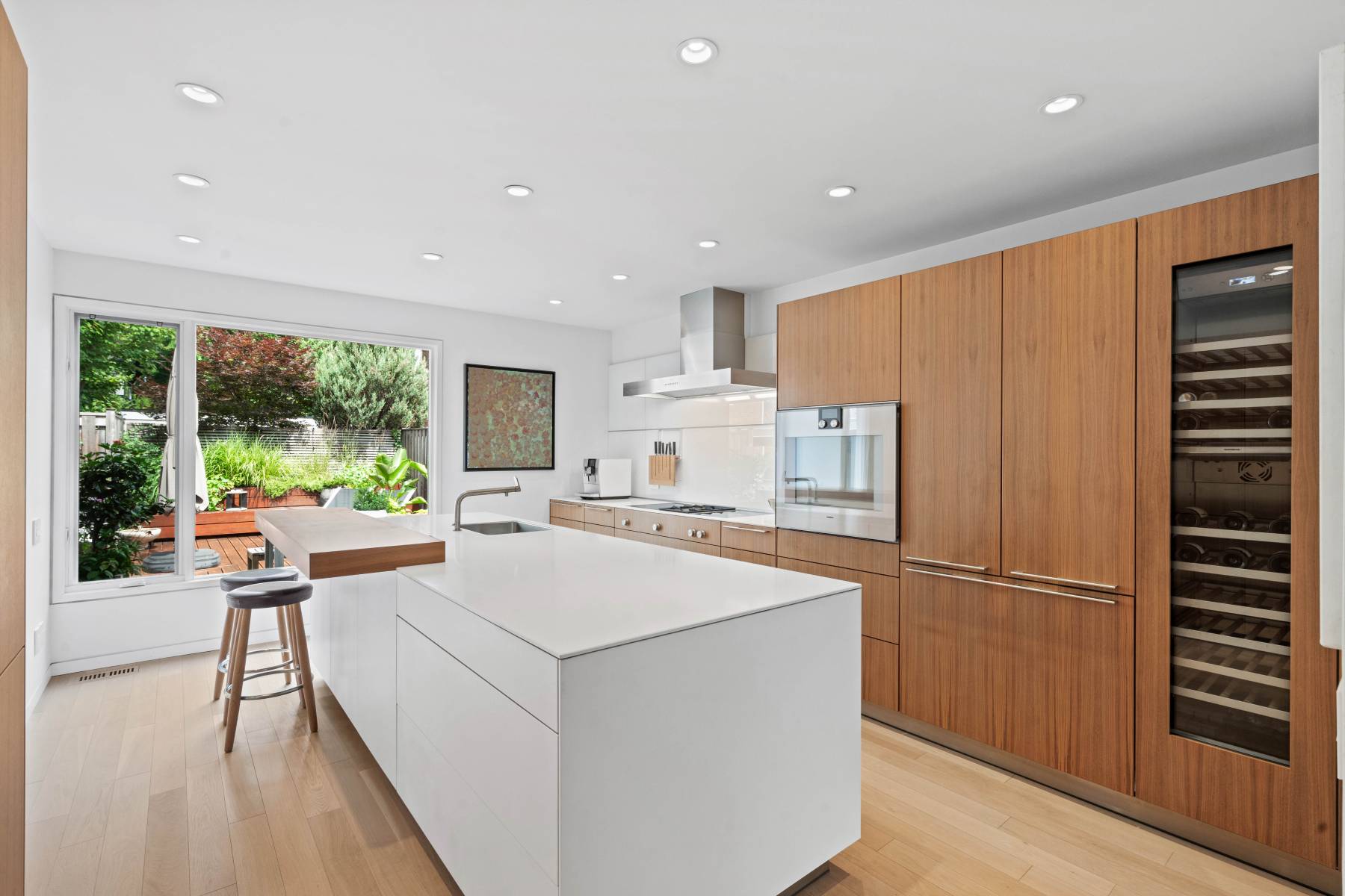 kitchen (2017) w 15” induction cooktops x2, 15” gas wok cooktop, 48” wall hood, 30”Gaggenau oven w rotisserie accessories + Pizza baking stone, 36” Gaggenau fridge /freezer, 18” Gaggenau wine fridge, 24” Gaggenau dishwasher, Bulthaup paper towelholder, Bulthaup knife rack, Black out curtains in living room, den and main bedroom w Glynda motorized tracks, Custom screens on windows, Custom bookcase (Basement), Integrated cedar planter on deck, Miele washer / dryer, Jotul gas fireplace