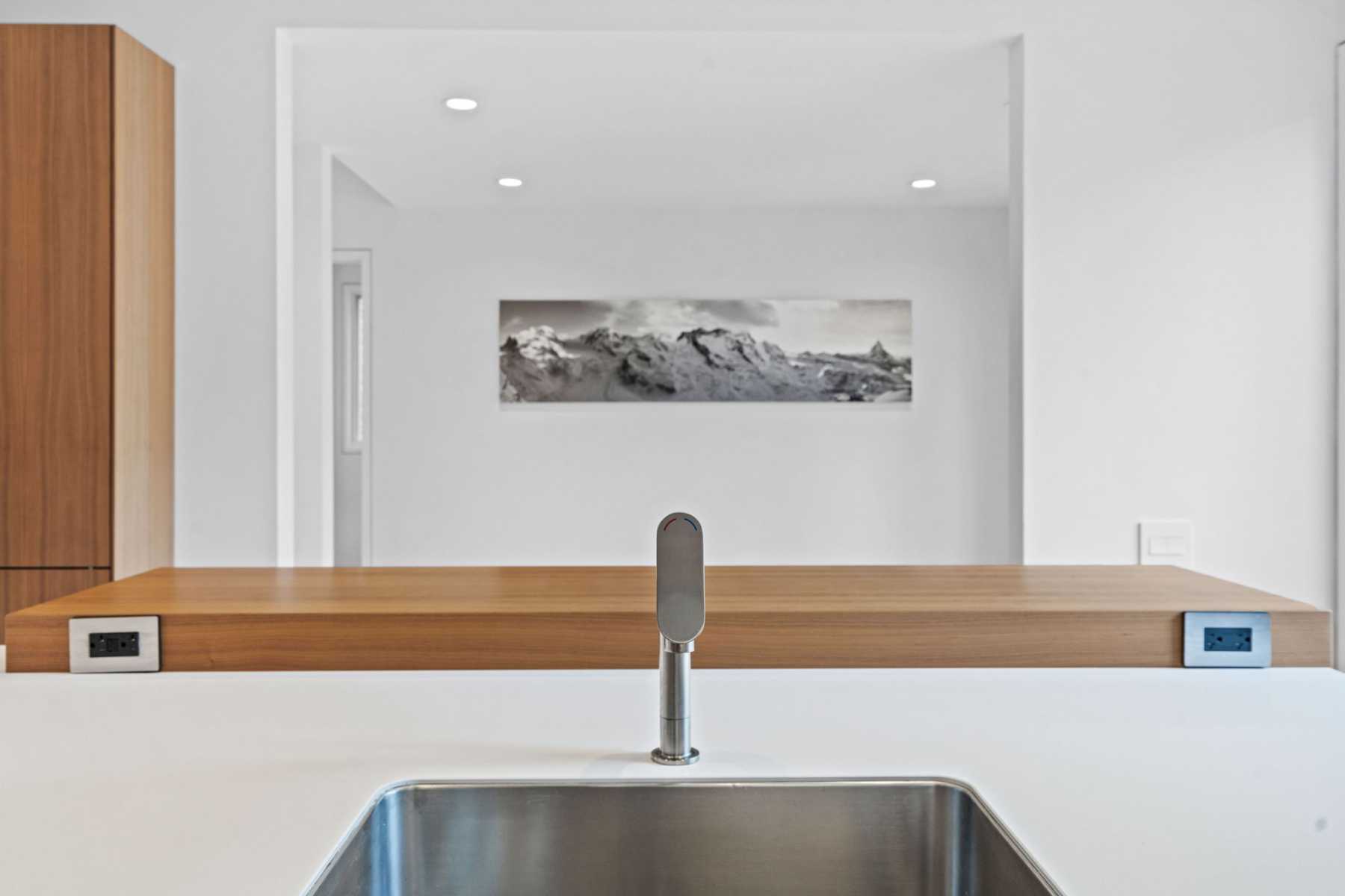 The custom Bulthaup kitchen is a showpiece of European precision: full-height walnut cabinetry, integrated professional-grade appliances, and quartz surfaces. The principal suite evokes a private spa retreat, with bespoke cabinetry, heated floors, and an Astro Design marble ensuite. A flexible secondary bedroom and sitting room/office extend the home’s versatility.