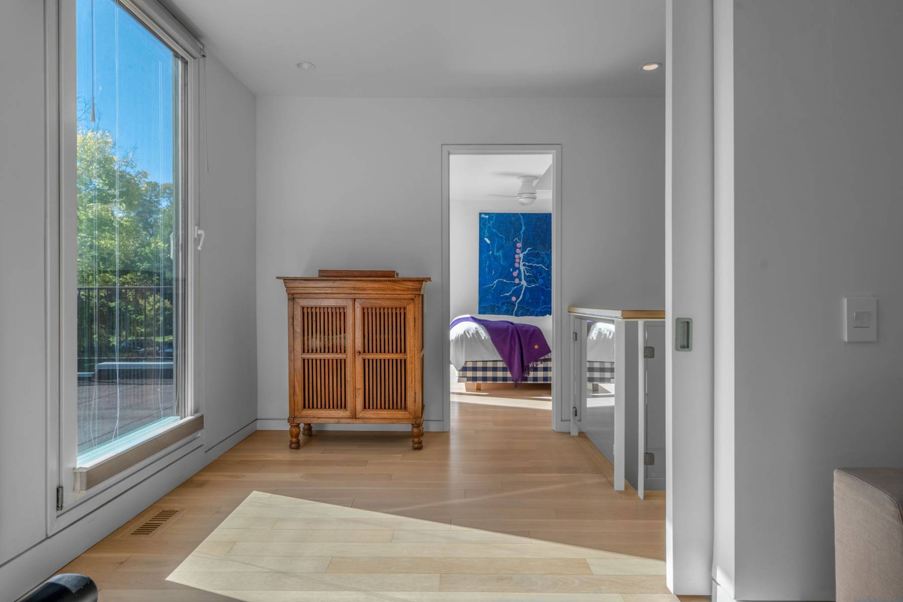 Exceptional water and park vistas, wall of windows. Oversized loft door to landing. Door to flat roof for further developement if desired.