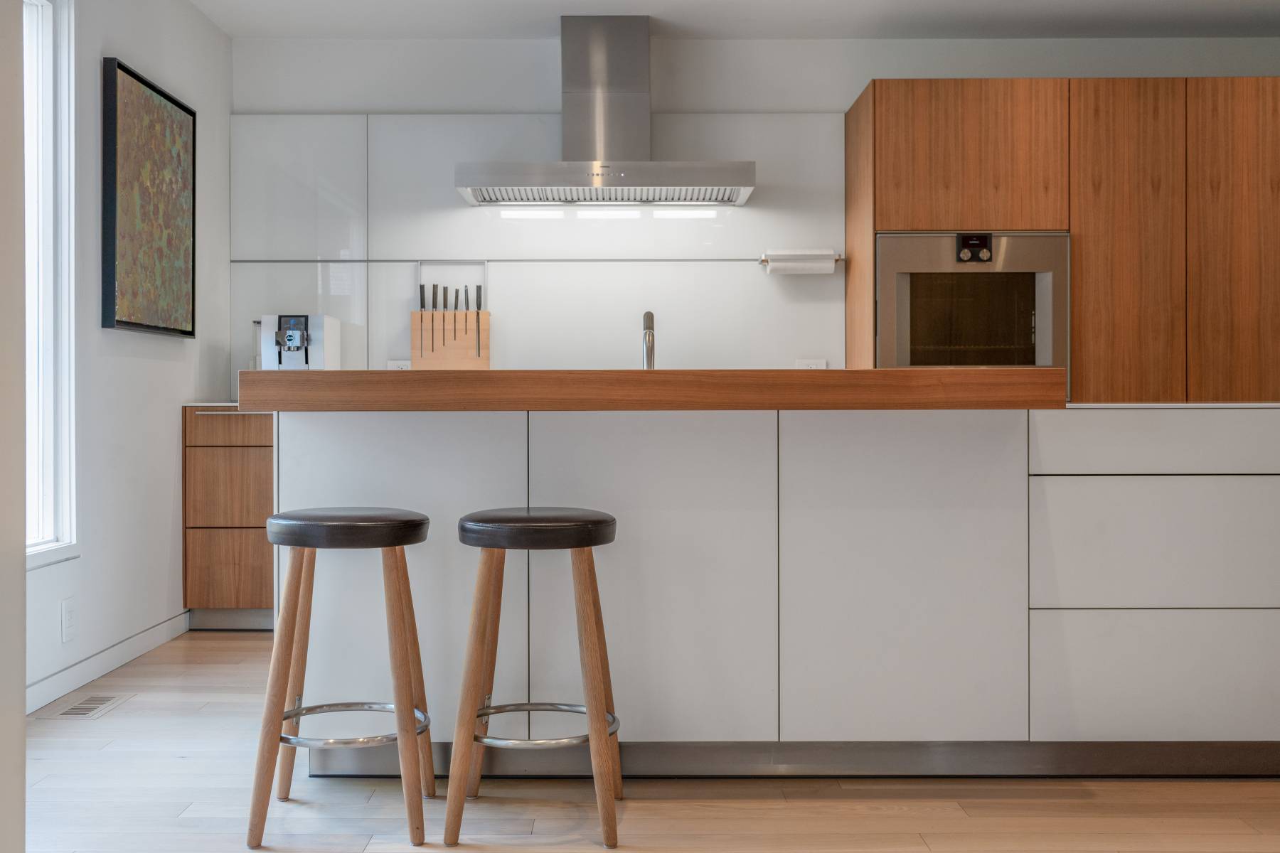 Cabinets + Bar top walnut veneer Base cabinets laminate w laser edge, BULTHAUP (Toronto)custom kitchen. see other information .