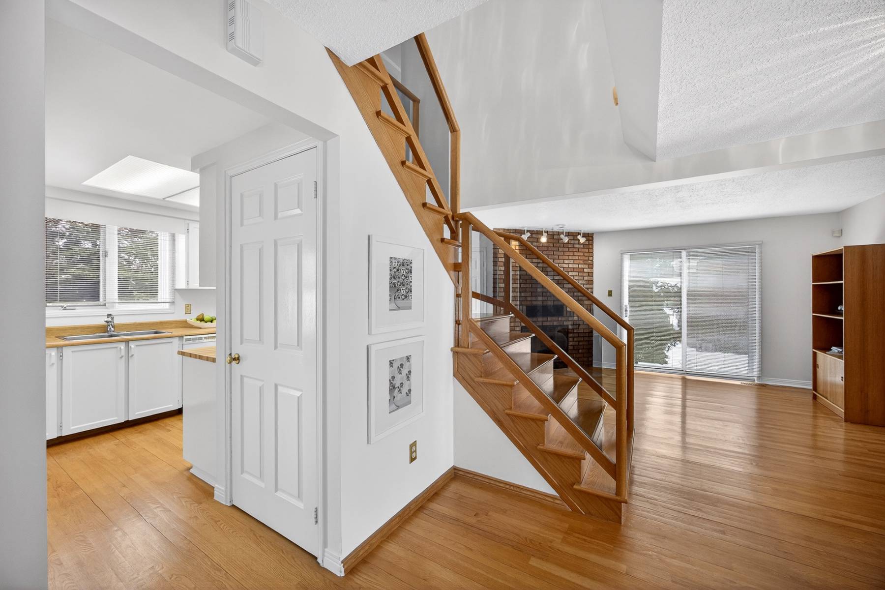 From the backyard, a wide ribbon of green space stretches quietly behind the homes, linking to forested areas at both ends. What was once planned as a bike path has become a peaceful natural corridor where kids explore, neighbours stroll, and wildlife quietly passes through. It’s a setting that makes the yard feel endless and wonderfully private.