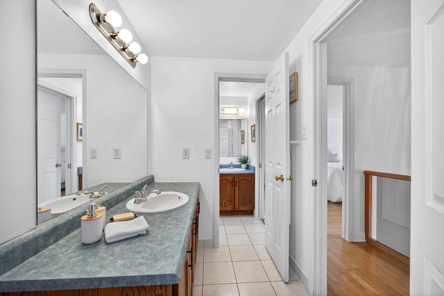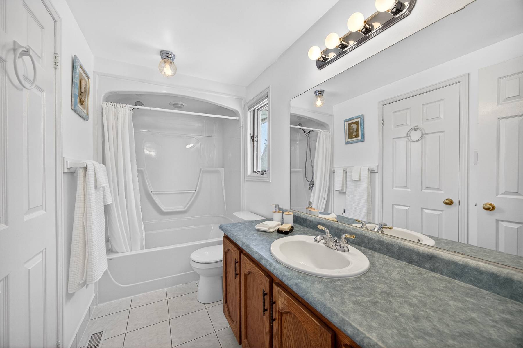 Upstairs, four bright and generously sized bedrooms provide comfortable retreats for the whole family, each featuring ample closet space and abundant natural light from well-placed windows. The principal bedroom includes a spacious walk-in closet and a convenient two-piece ensuite with access to the full family bathroom — a thoughtful layout ideal for busy mornings and everyday living.