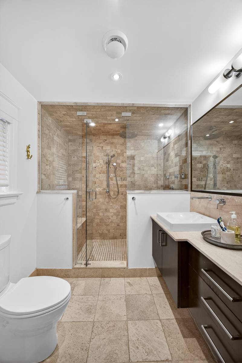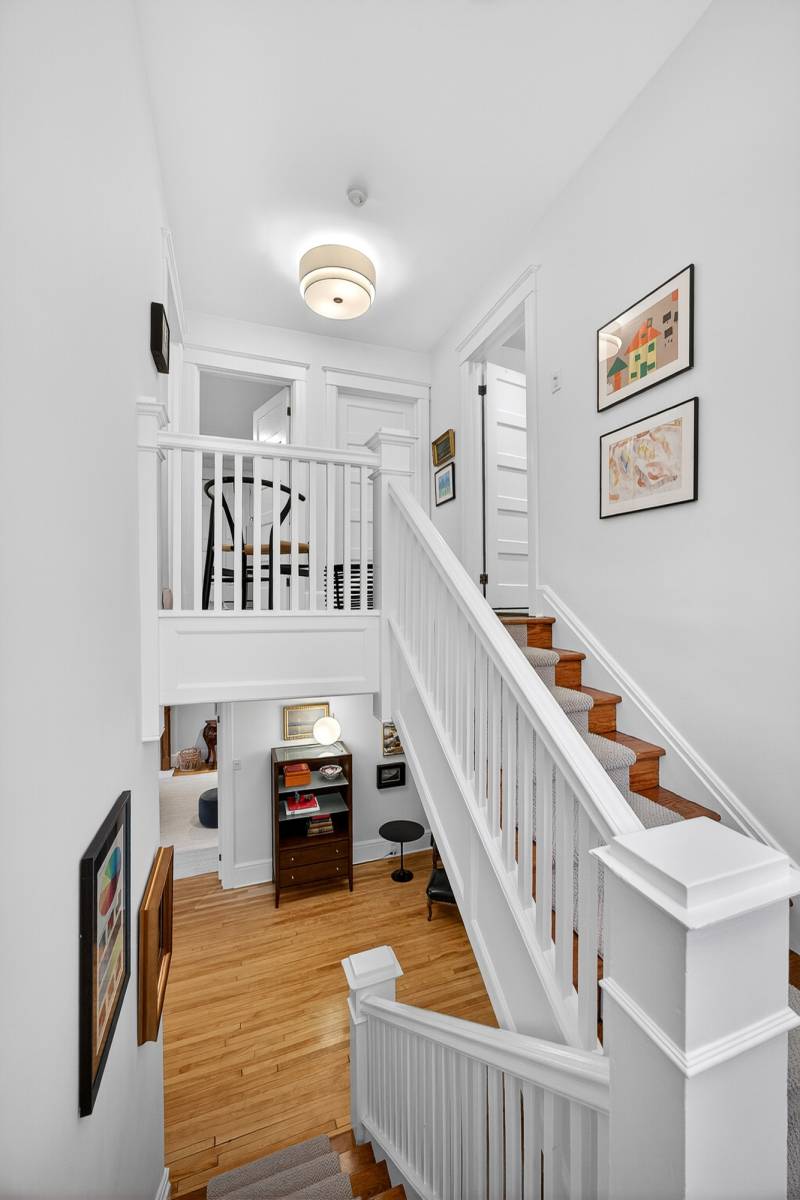 Full and generous third floor offers 3 bedrooms and a full bathroom. Side door entry/landing is perfect for the kids, and provides access to the fully finished lower level complete with a family room, wine cellar, good storage and 2pc bath. The back yard/garden has a unique terrace, lots of space for entertaining and for the kids to play, fully fenced. 5+beds/5 baths.