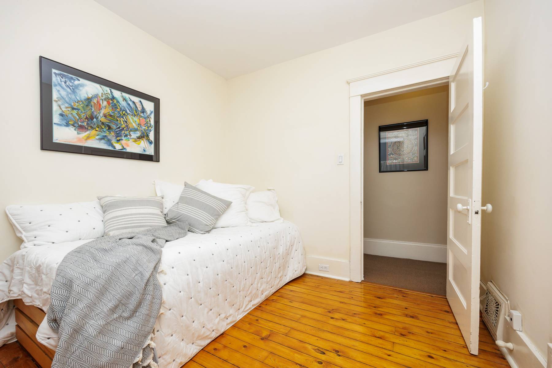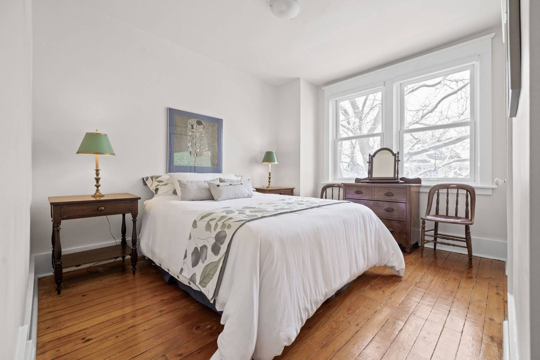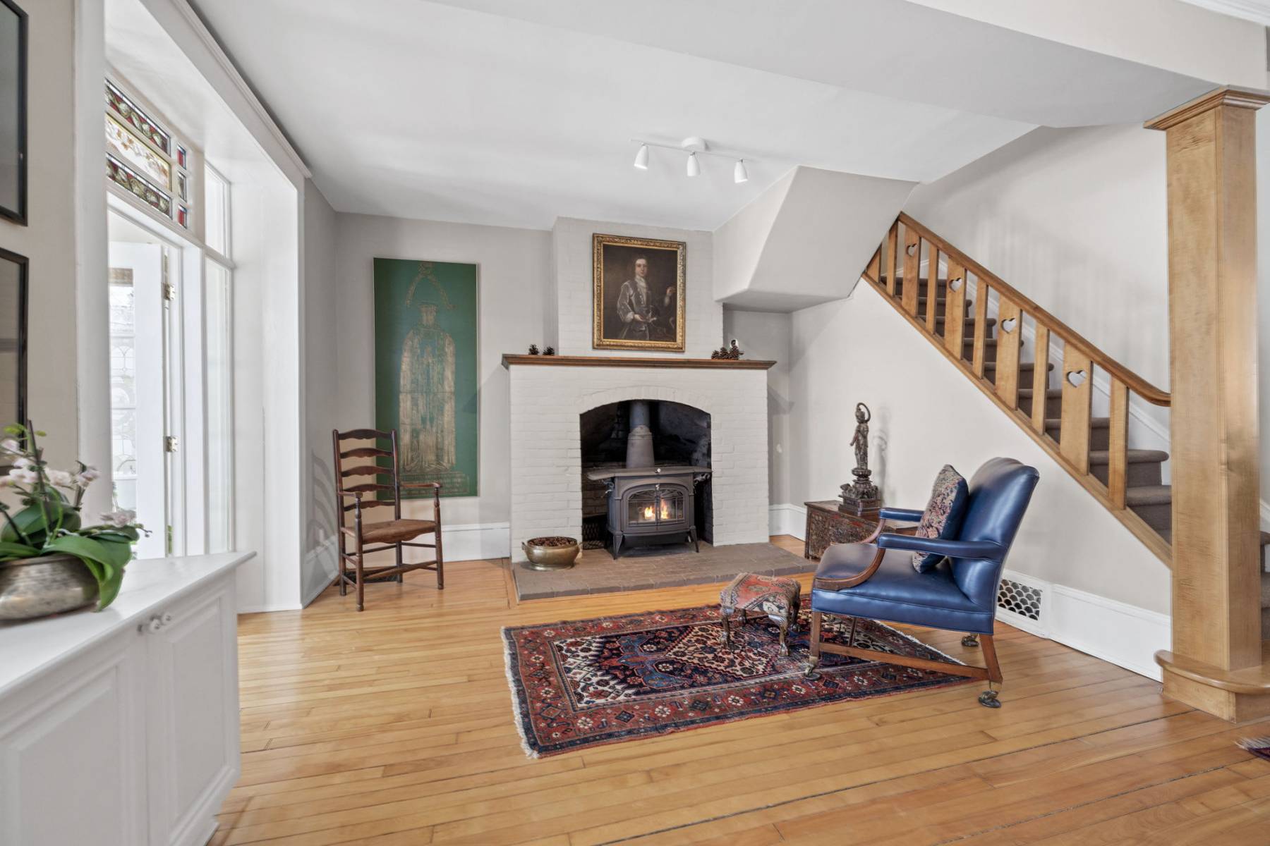 The second floor offers four generously sized bedrooms, a restored clawfoot tub in the main bathroom, and a sunny family room that can double as an additional bedroom.