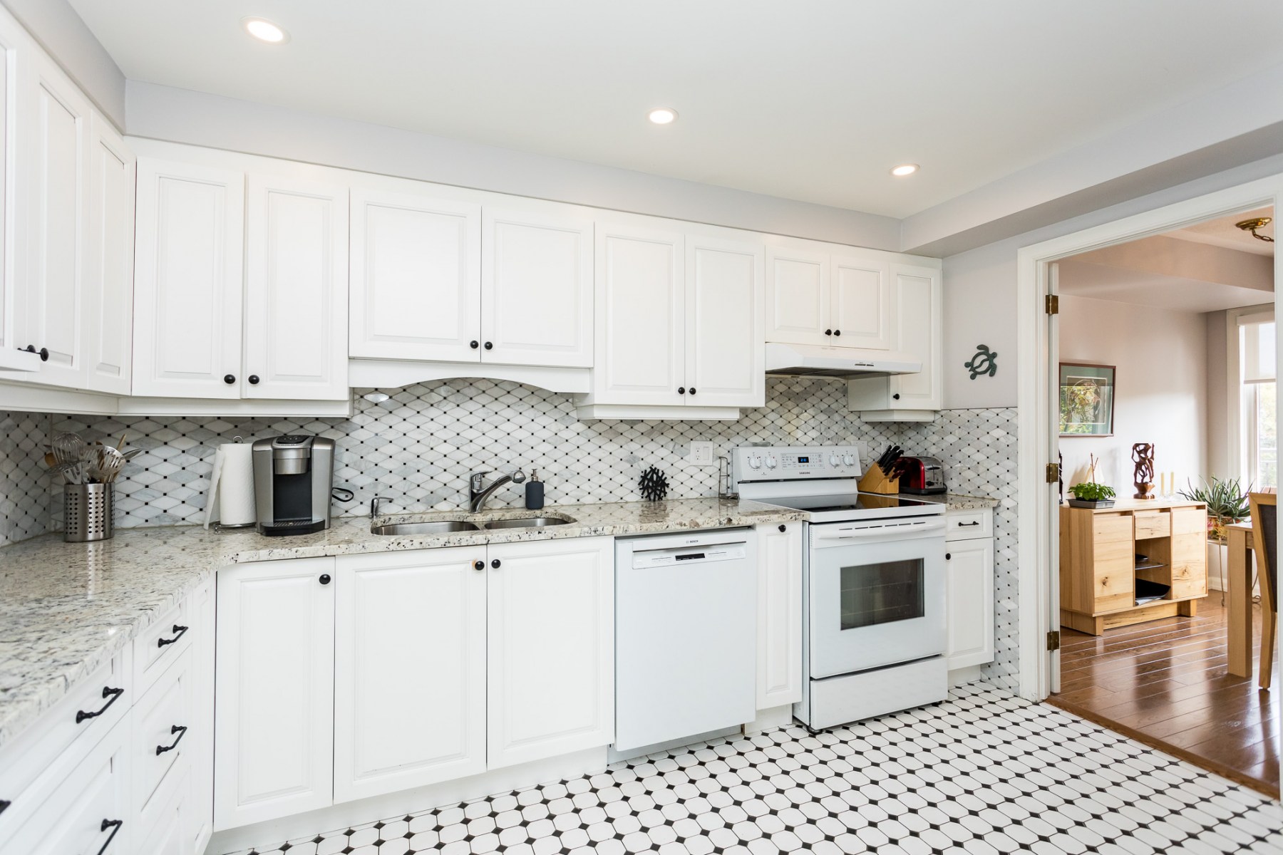 Lots of excellent storage and cupboard space, marble tile backblash and ceramic tile floor.