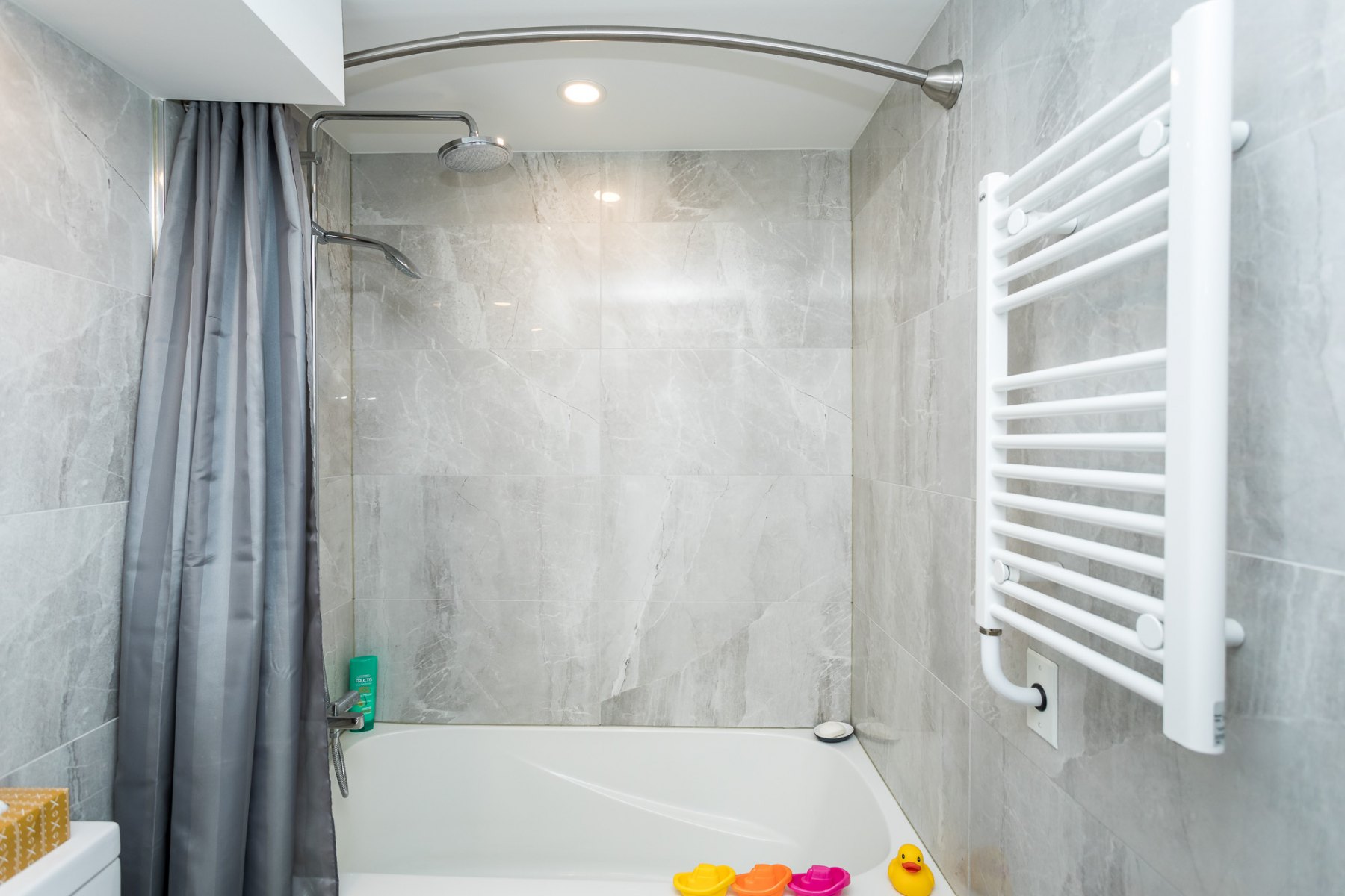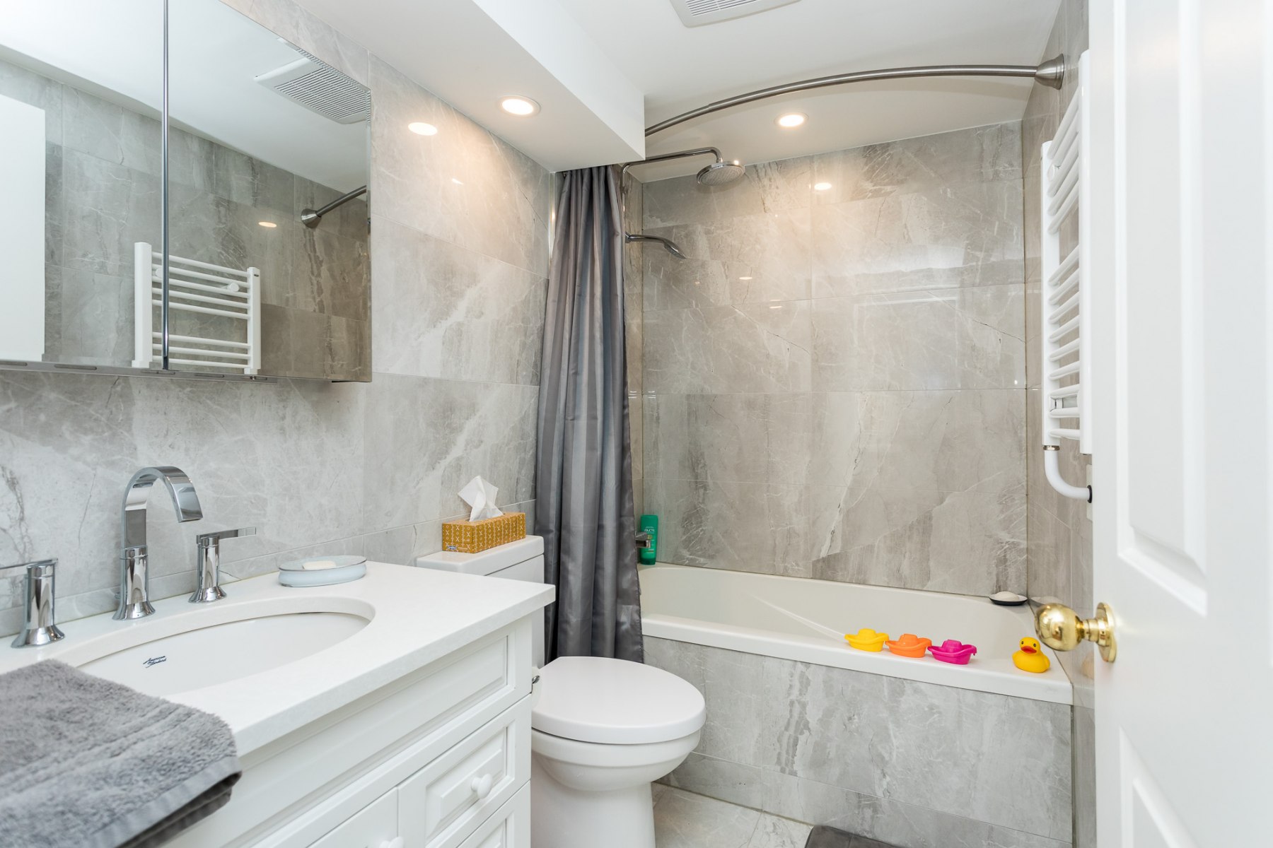 fully redone 4pc Lovely earth tons and quality workmanship and fixtures.Heated towel rack.