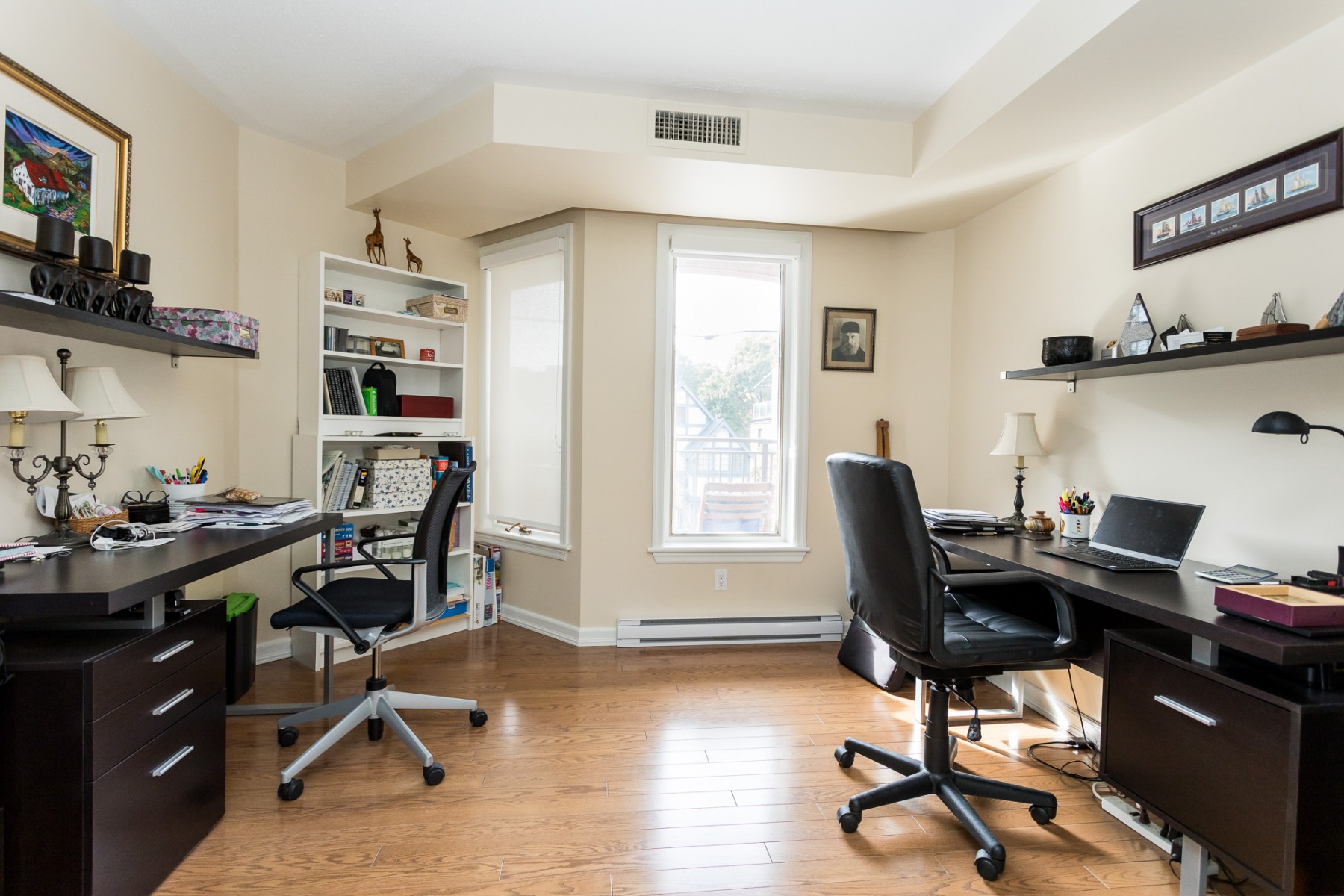 Start your day in the generously proportioned principal bedroom, complete with its own terrace, a newly renovated 3-piece ensuite bathroom, and ample closet space. The secondary bedroom also offers a private terrace and a tastefully redone bathroom is conveniently nearby.