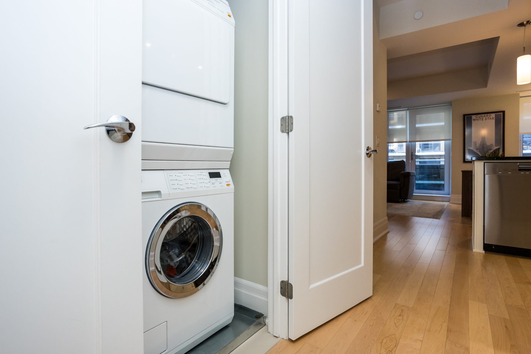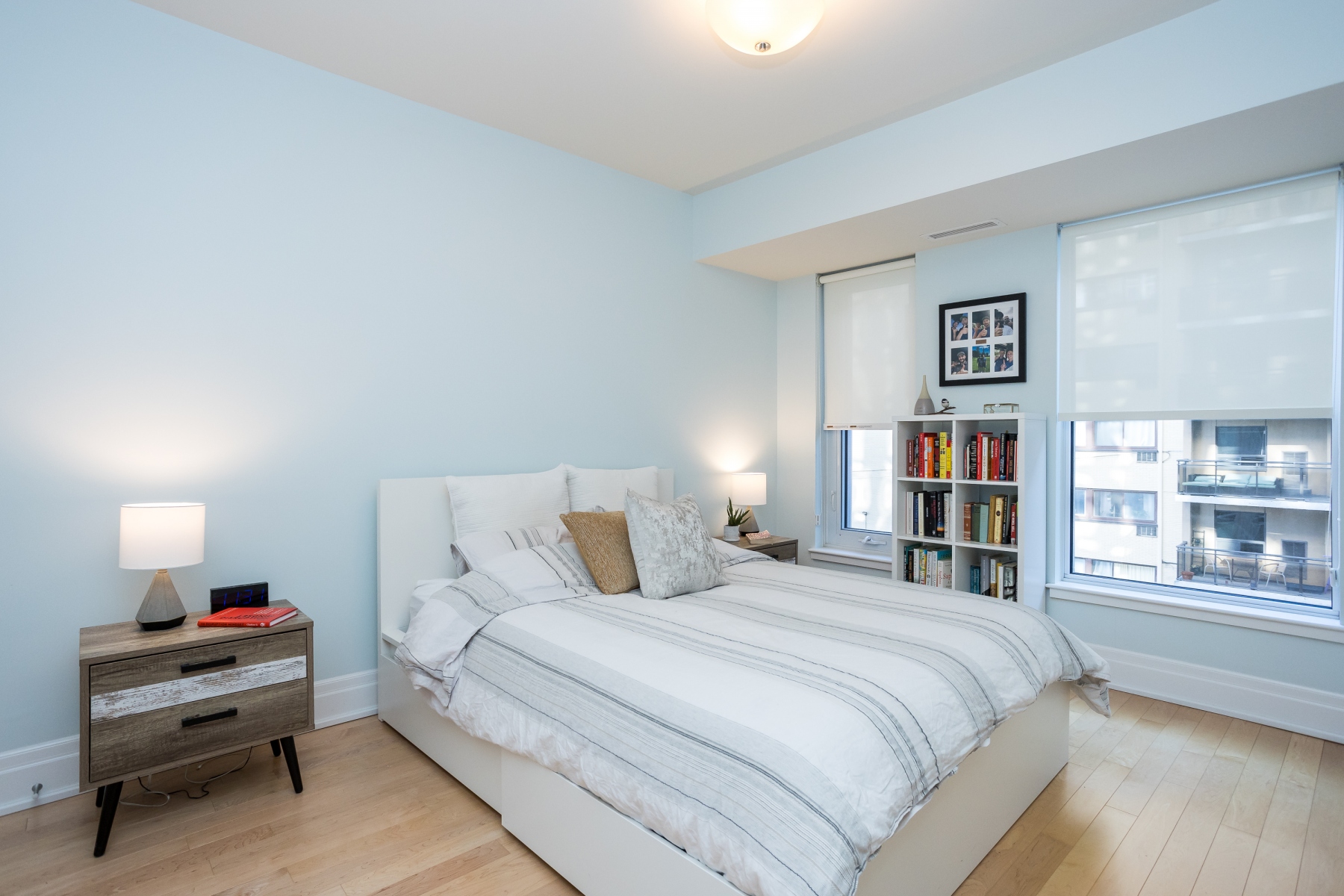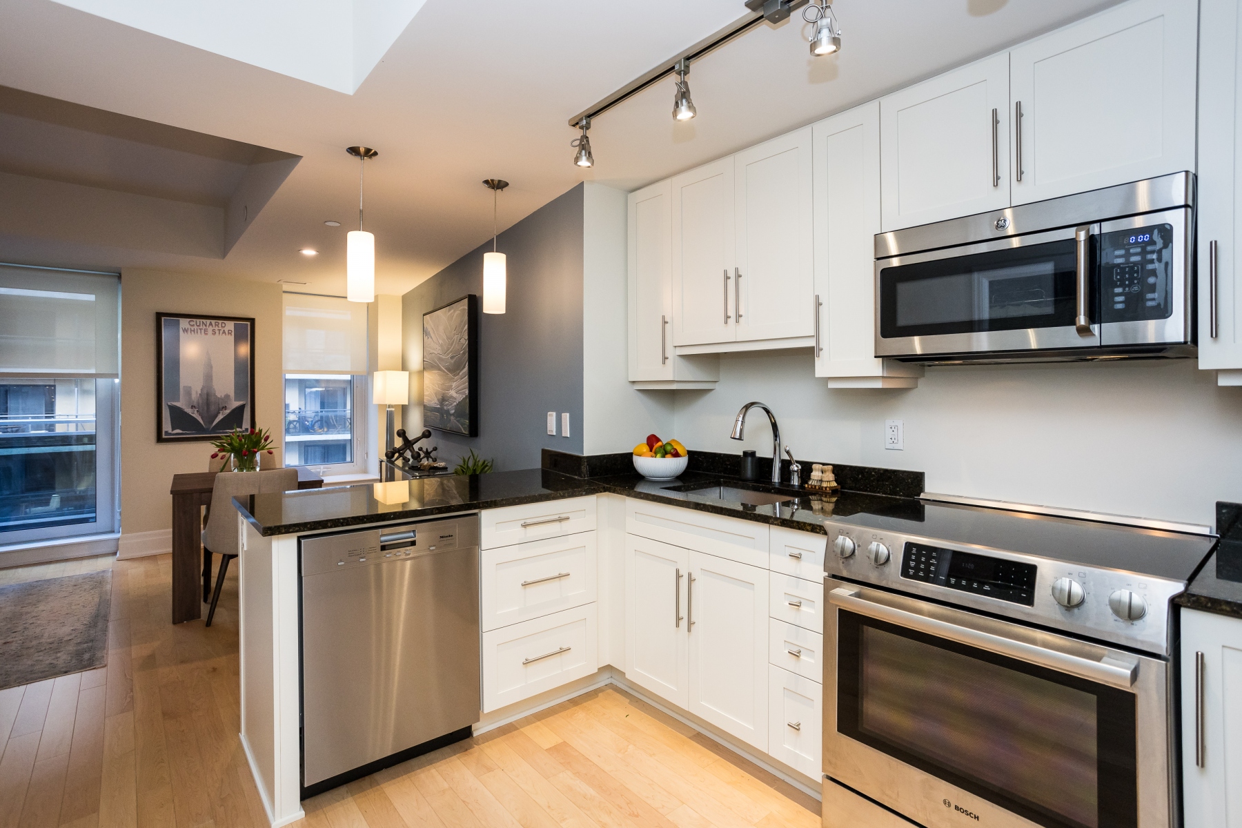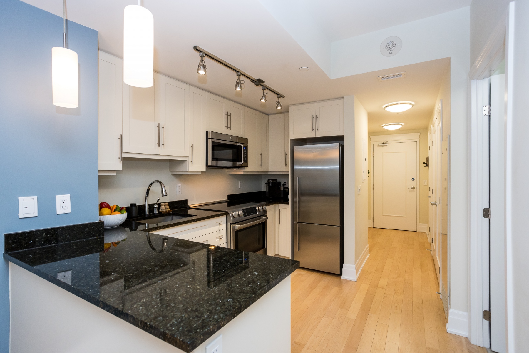 Step into this immaculate one-bedroom loft-style suite providing approximately 710 sq. ft. Ideal for the on-the-go executive, it offers a seamless blend of urban sophistication and functionality. The southern exposure floods the space with natural light, while hardwood floors, brushed steel appliances, and custom window coverings accent the rooms.
